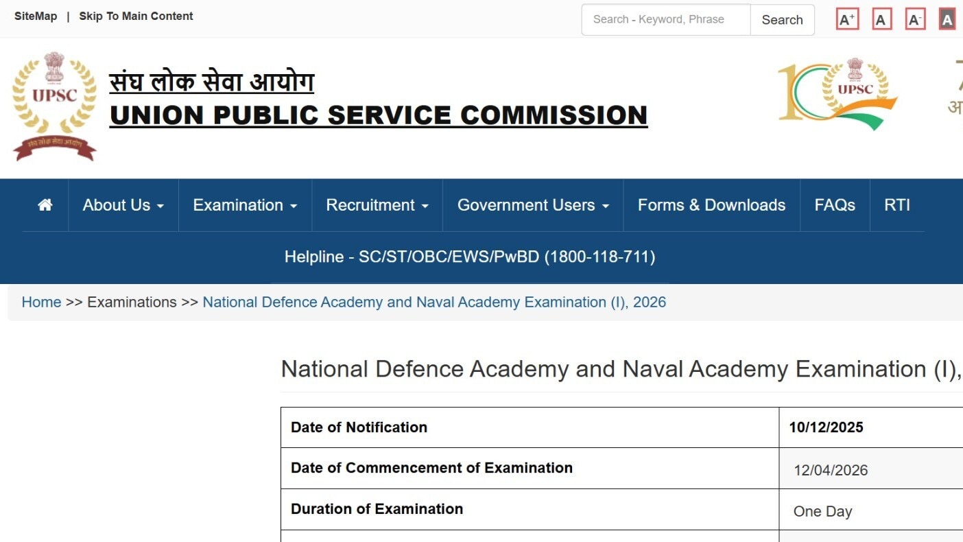 The Union Public Service Commission (USPC) has launched the application process for the 2026 National Defence Academy (NDA), Naval Academy (NA), and Combined Defence Services (CDS) exams. The registration process started on Dec. 10.