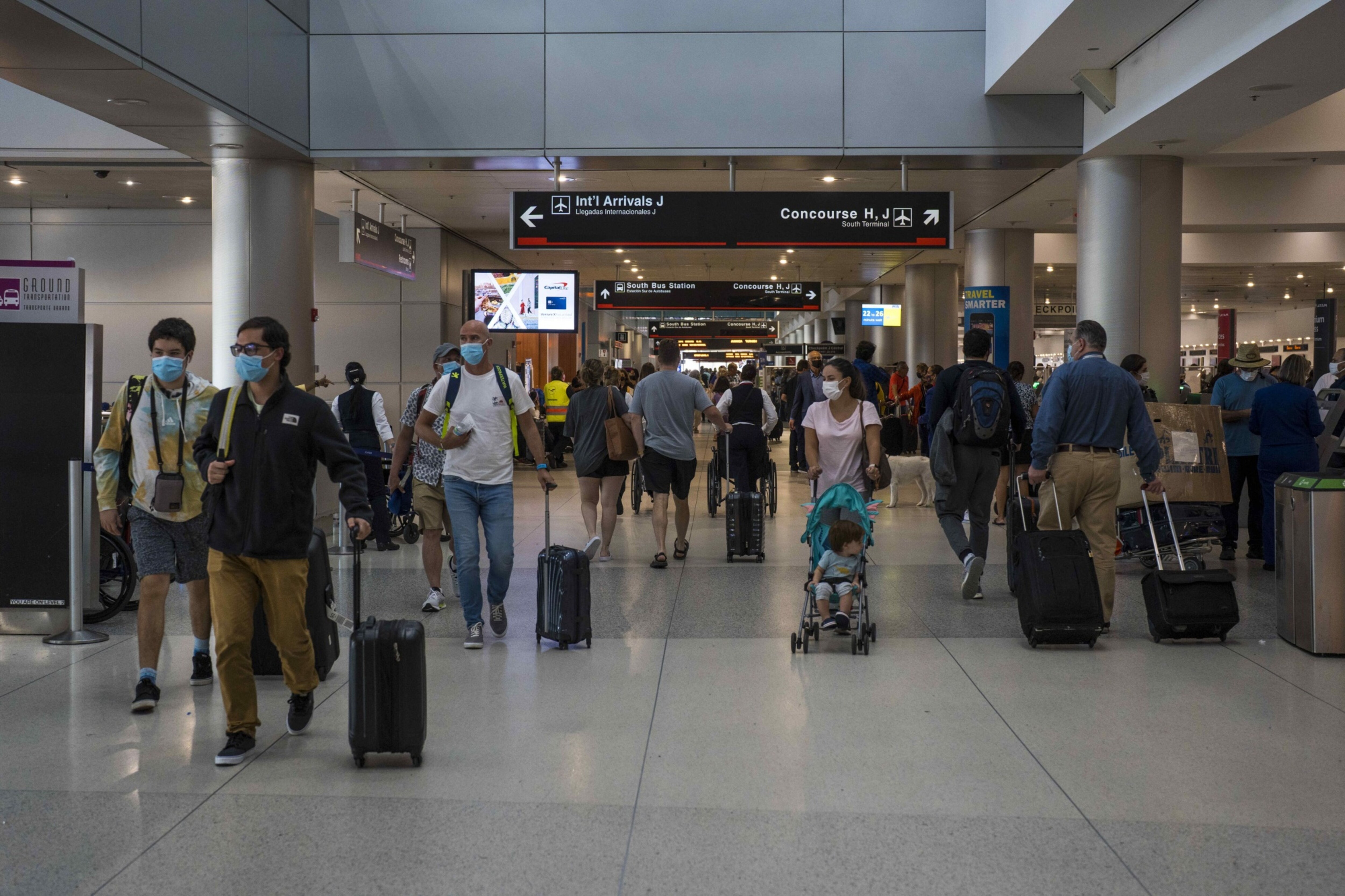 Travelers at the departures concourse of Miami International Airport in U.S. (Photographer: Saul Martinez/Bloomberg)