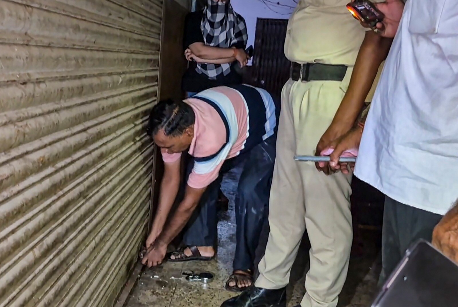 Jabalpur: Officials seal office of a firm, that allegedly supplied Coldrif cough syrup, after a raid, in Jabalpur, Madhya Pradesh, Sunday, Oct. 5, 2025. (PTI Photo)