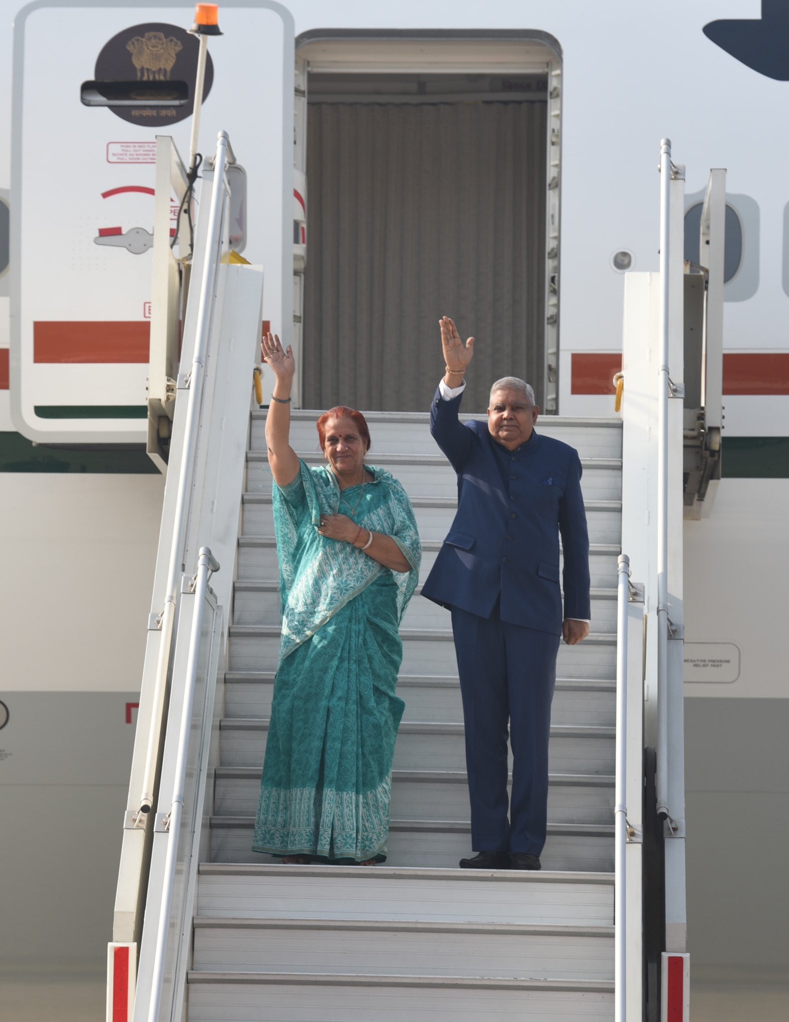Hon'ble Vice President, Shri Jagdeep Dhankhar and Dr. Sudesh Dhankhar emplane for Doha, Qatar to attend the inauguration of the FIFA World Cup 2022. @MEAIndia @IndEmbDoha @FIFAWorldCup pic.twitter.com/rFN5snMPNN