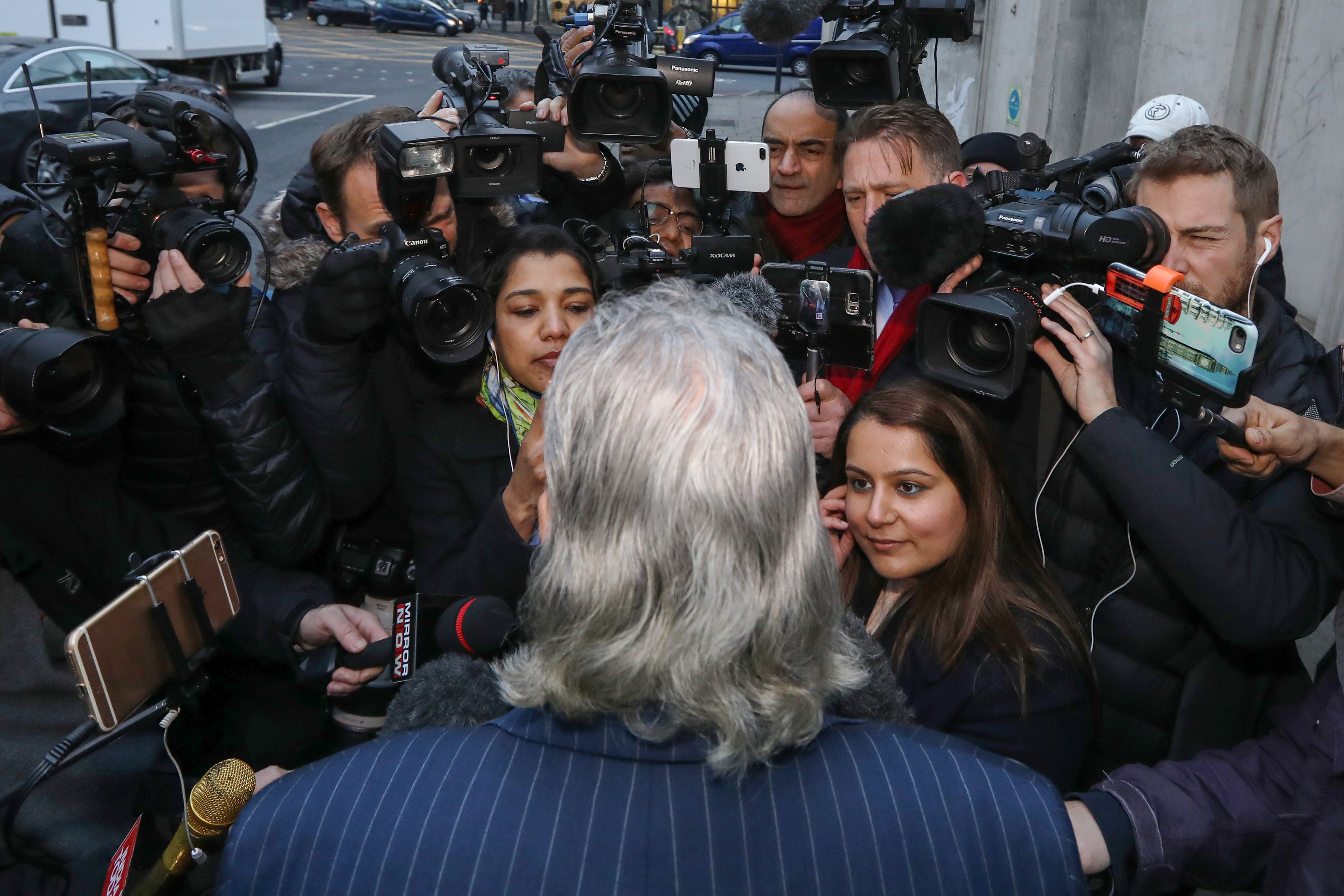 Vijay Mallya, founder and chairman of Kingfisher Airlines Ltd., faces members of the media as he arrives at Westminster Magistrates’ Court in London, U.K. (Photographer: Luke MacGregor/Bloomberg)