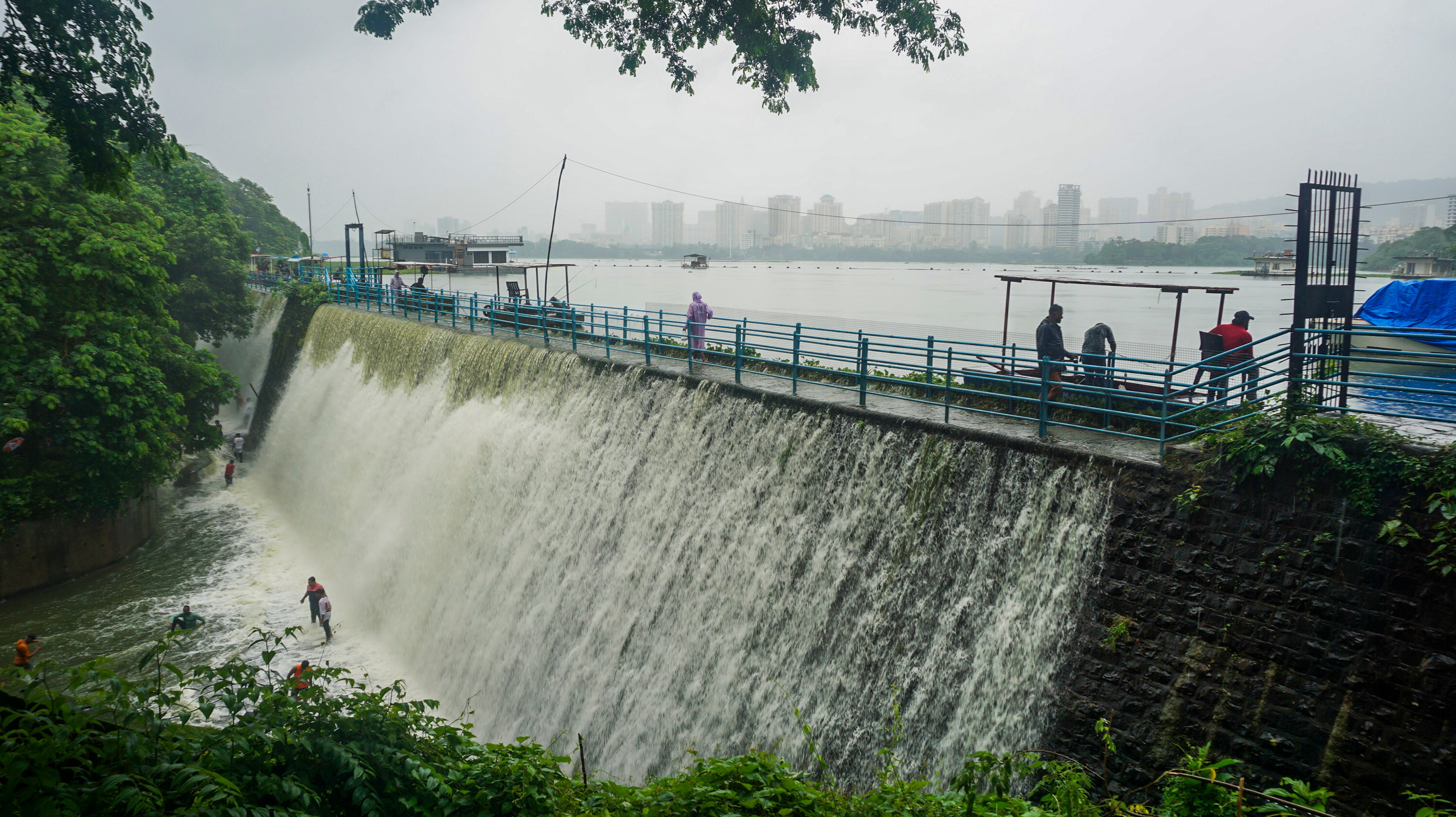 Mumbai's Powai Lake began overflowing on Monday. The lake, which has a storage capacity of 545 crore litres, started overflowing at 4.45 am. However, the water from the lake is not potable and is used only for industrial purposes.