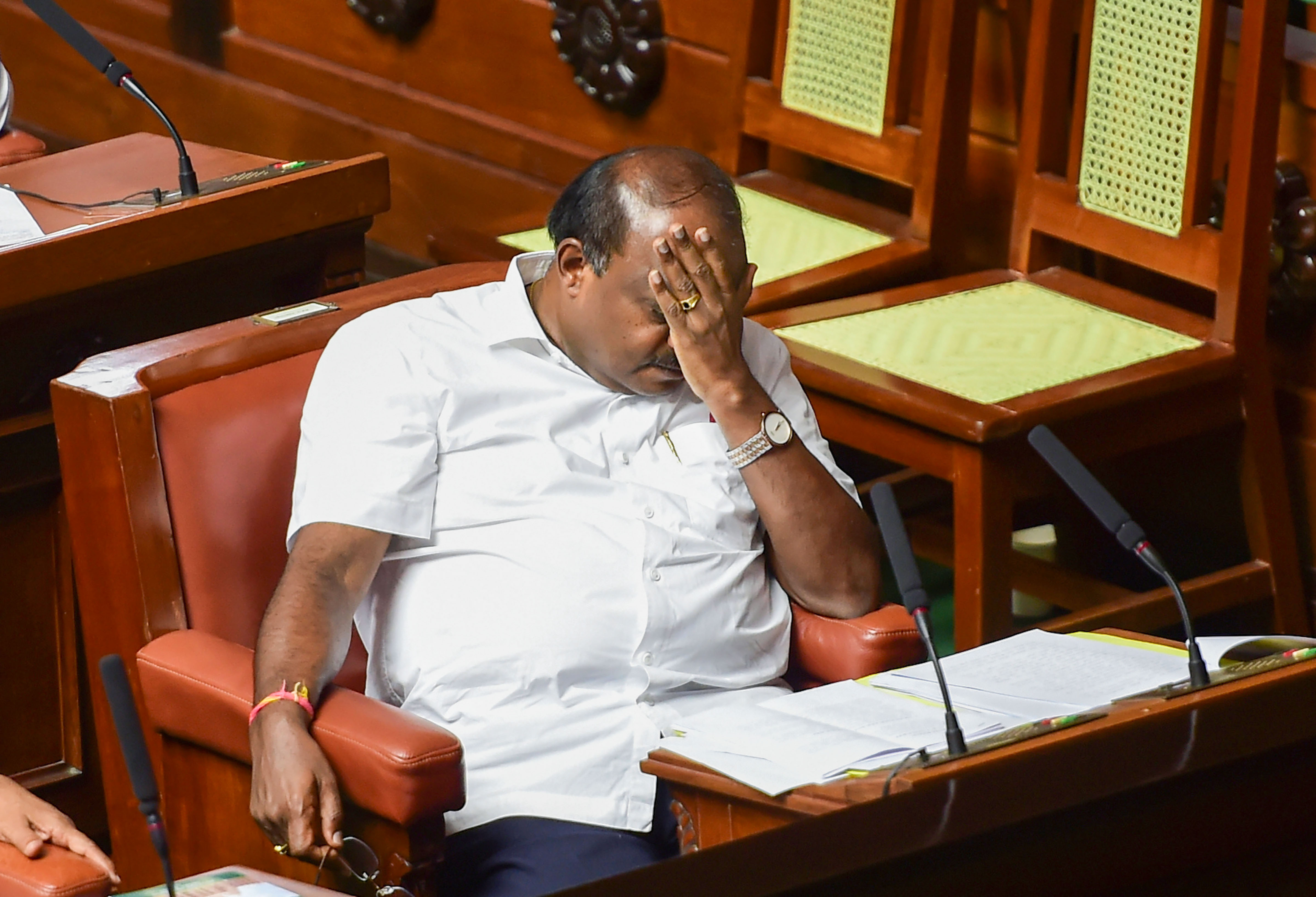 HD Kumaraswamy during the vote of confidence in Assembly Session at Vidhana Soudha, in Bengaluru. (Source: PTI)