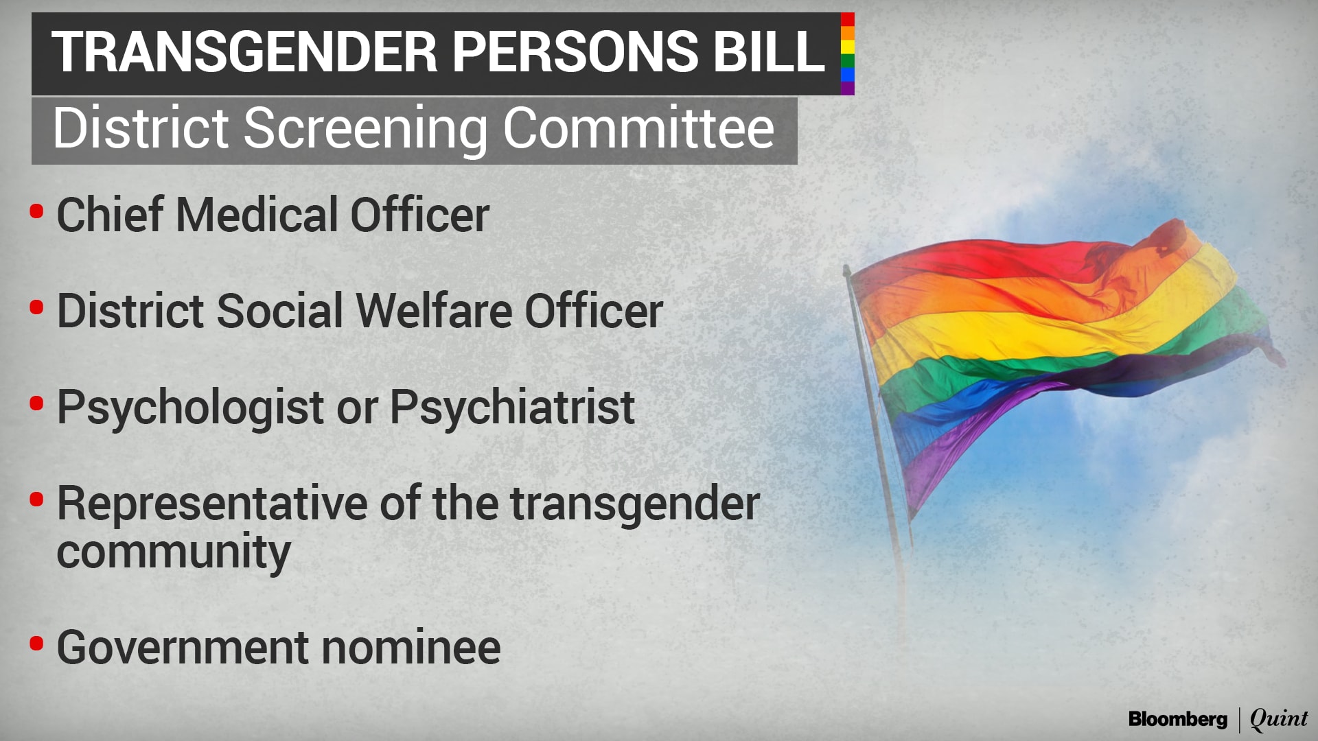 According to the Transgender Persons Bill, “A transgender person shall have a right to self-perceived gender identity.” However, to formalise one's gender, a person is required to get certified from a District Screening Committee.