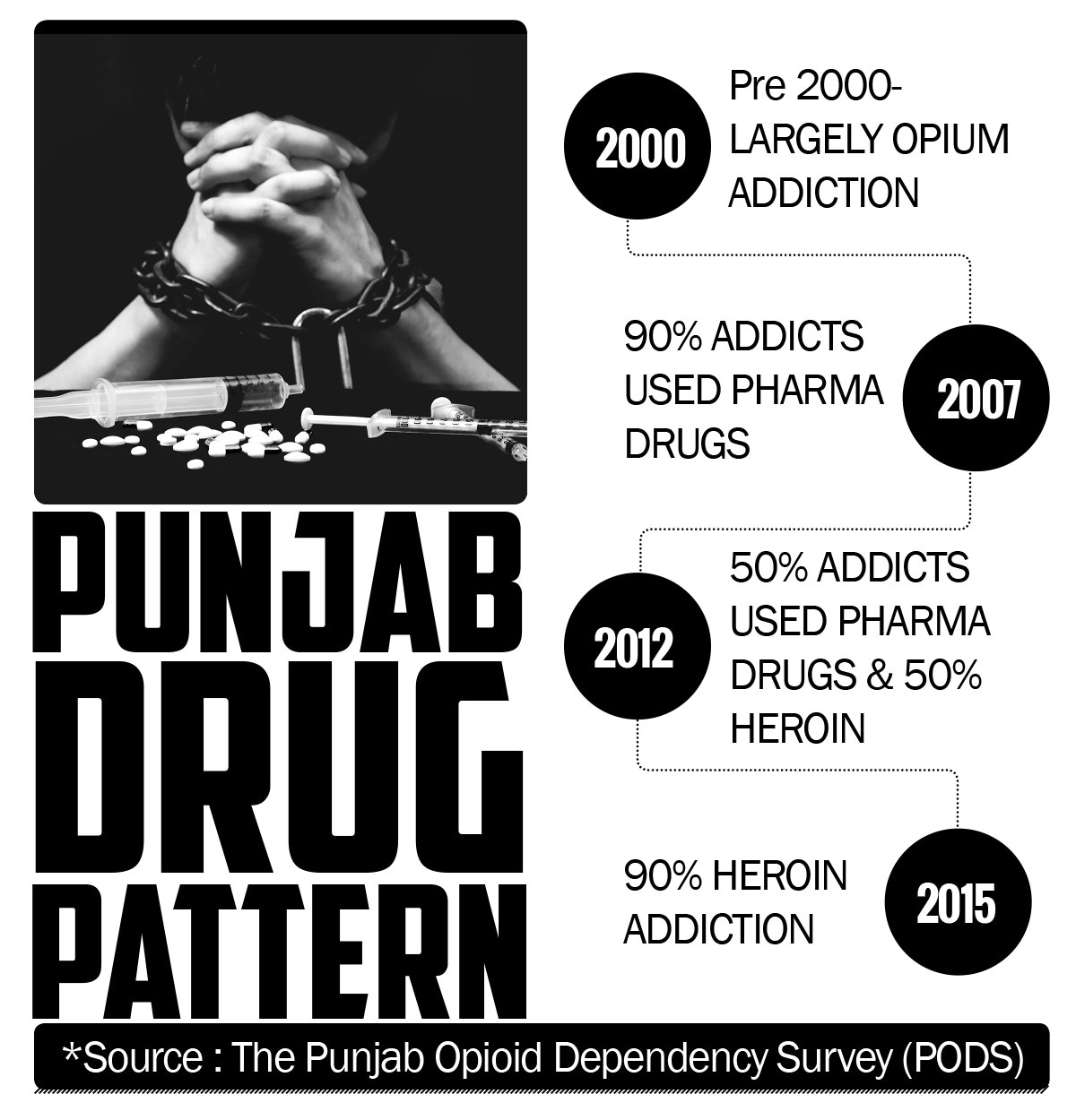 It's not just spoilt rich kids or rock stars who consume drugs in Punjab, as the movies would have you believe. The Punjab Opioid Dependency Survey (PODS) conducted by the National Drug Dependence Treatment Centre, AIIMS points out that the largest concentration of consumers come from economically weaker sections with limited education and employment. The PODS survey says:
