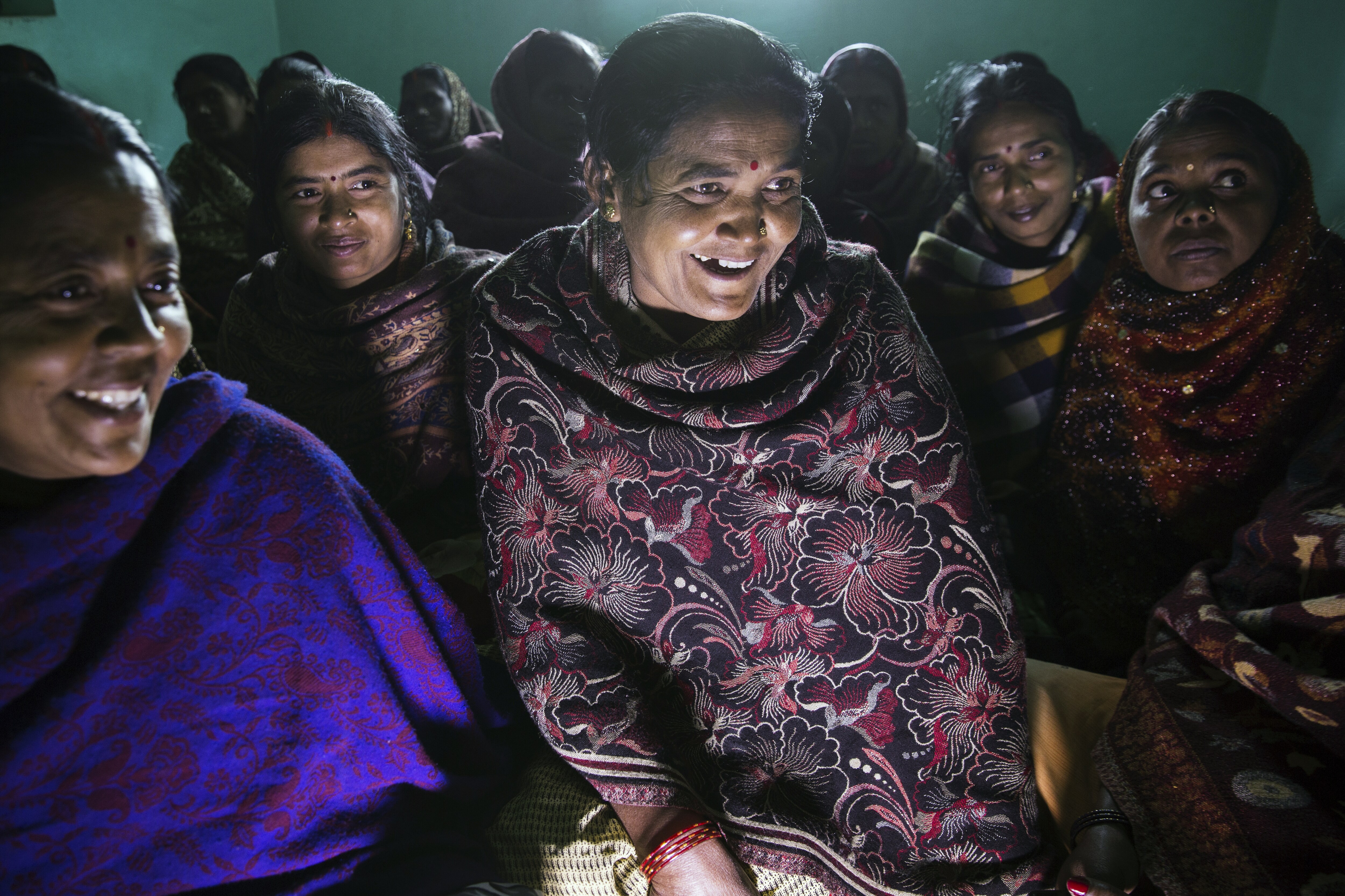 Women attend a meeting for Aajeevika, a government loan program available to women, at the program’s office in Khizasarai, Bihar. (Photographer: Ruhani Kaur/Bloomberg)