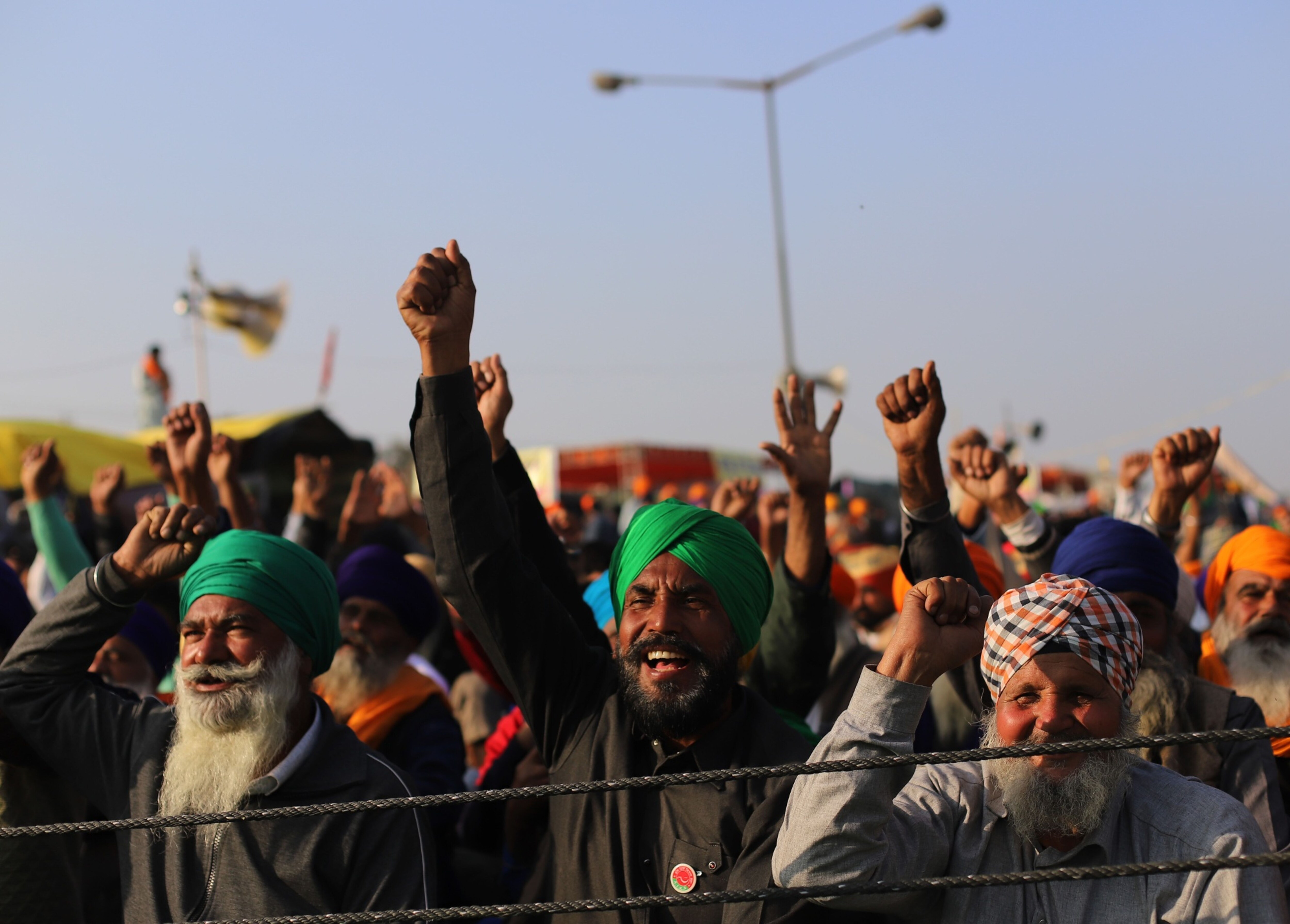 Farmers gather at a protest site on the Delhi-Haryana border crossing in Singhu, Delhi, India. (Photographer: Prashanth Vishwanathan/Bloomberg)