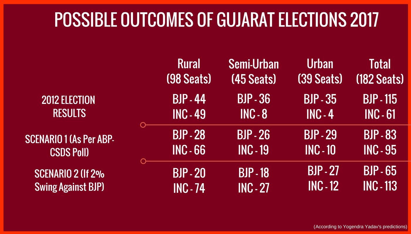 Psephologist Yogendra Yadav drafted a probable three-case scenario for the upcoming Gujarat elections, which sees BJP, the traditional kingpin in the state, lose in all possibilities.