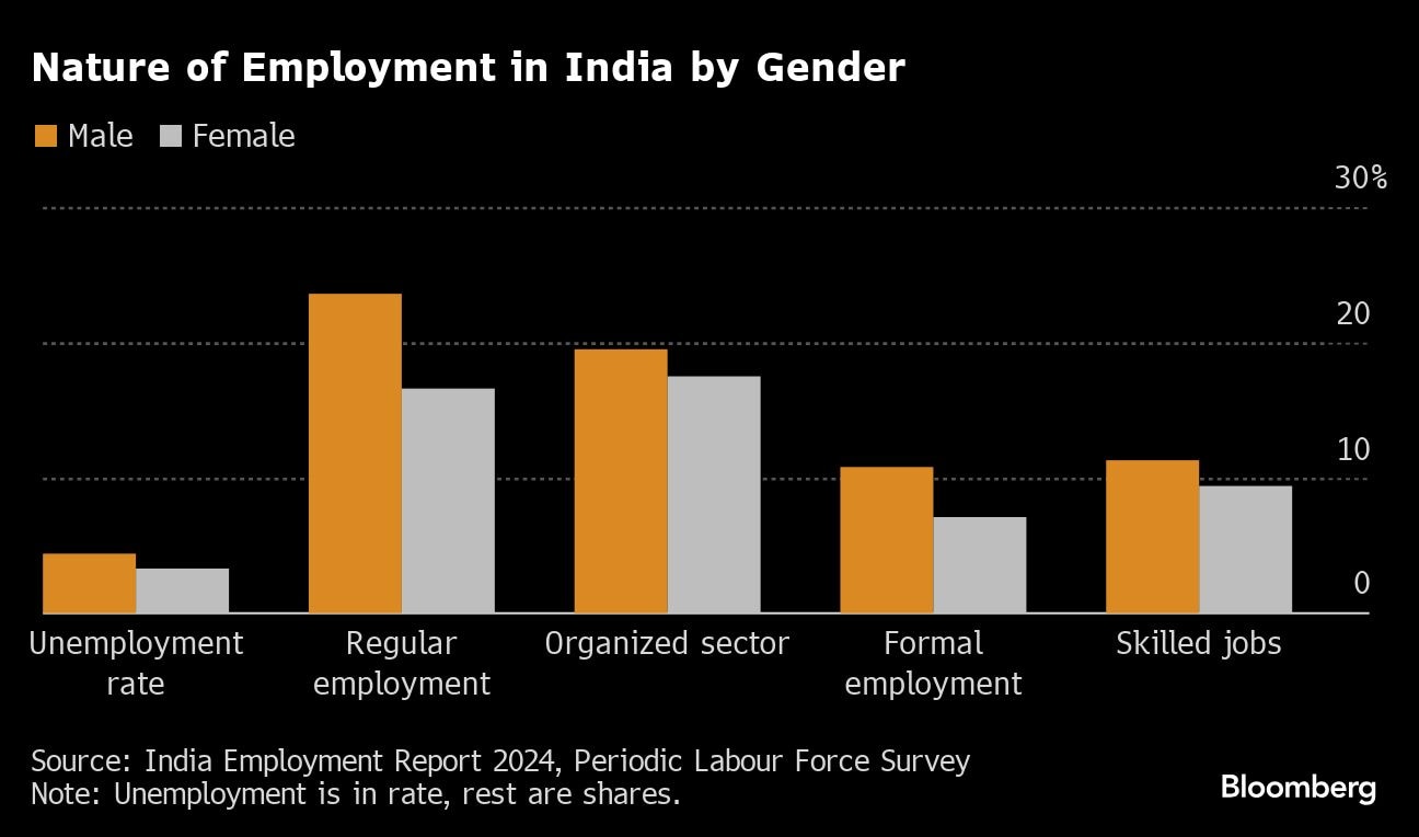 India has one of the lowest female labor force participation rates in the world, at about 25%, the ILO said. The rate improved during the pandemic after a “significant increase” in subsistence employment, it said.