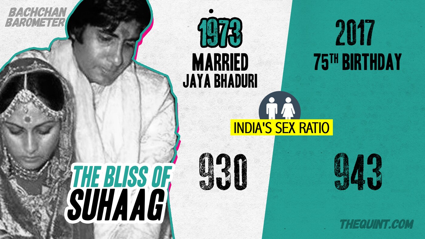 Amitabh Bachchan got hitched with Jaya Bahaduri in 1973. He was lucky perhaps, because many wouldn't have found a partner because of the disappointing sex ratio in the country then. However, 44 years later India's sex ratio stands slightly improved.