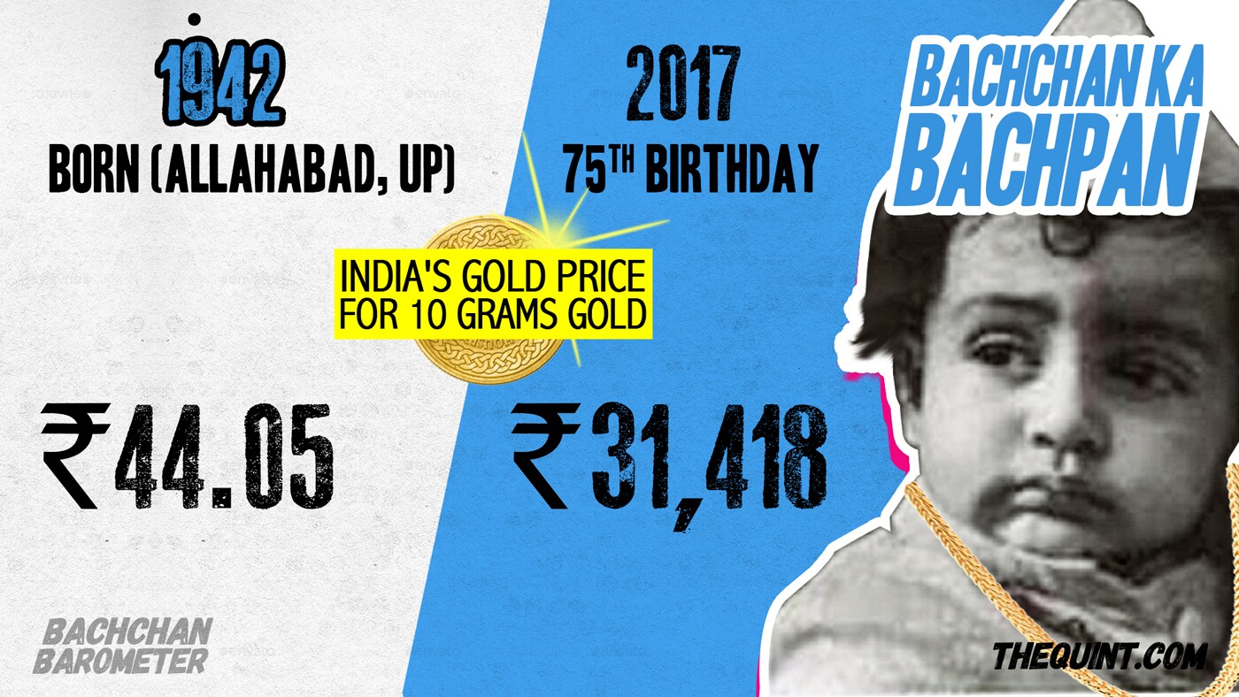 The boy who would go on to strike gold in Bollywood was born in 1942. The price of 10 grams of gold was just Rs 44.05 that year. It's shot up by 31,314 rupees in the 75 years since!