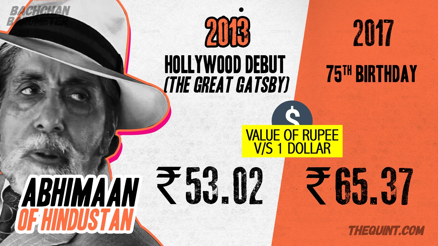 Hollywood has charmed a lot of Bollywood stars. Though Amitabh Bachchan got only a cameo in Leonardo DiCaprio-starrer The Great Gatsby, the news brought great cheer to the Indian film industry. Sadly though, unlike Big B's career trajectory, the Indian currency since then has weakened.
