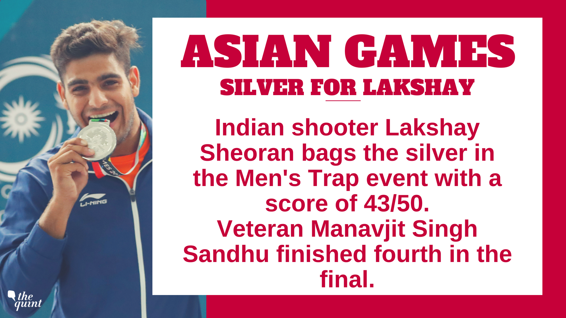 - 19-year-old shooter Lakshay bagged a silver in the Men's Trap event