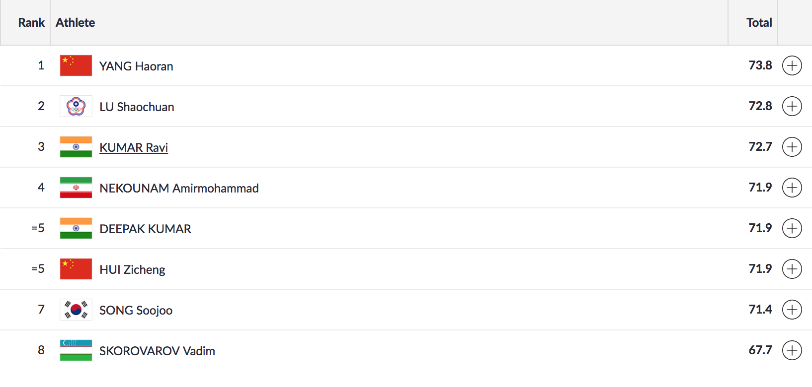 The Indian shooter was the fourth shooter to be eliminated from the final.