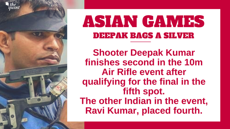 - Shooter Deepak Kumar opened India's account on Day 2 with a silver in the Men's 10m Air Rifle Final.