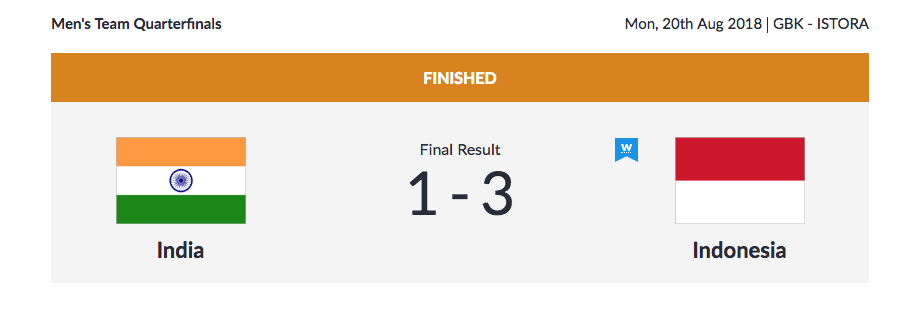 After the women, the Indian men's badminton team is also out in the quarter-finals following a 3-1 loss to Indonesia.