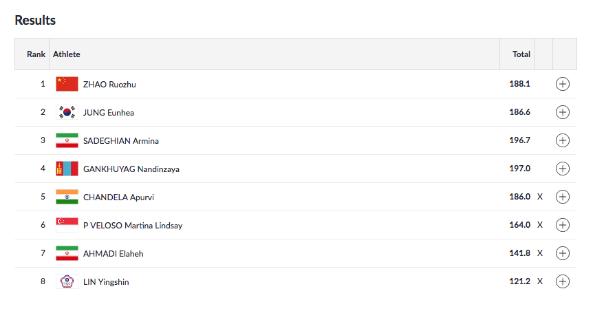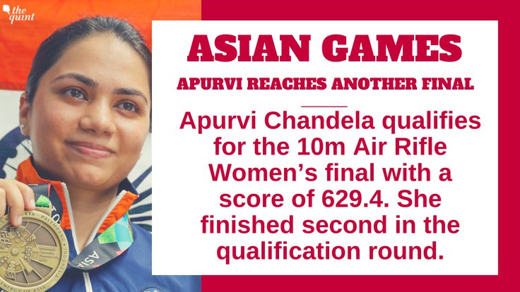 Another shot at winning a medal for shooter Apurvi Chandela as she qualifies for the 10m Air Rifle Women's final with a score of 629.4. She finishes second in the qualification round after Ruozhu Zhao.