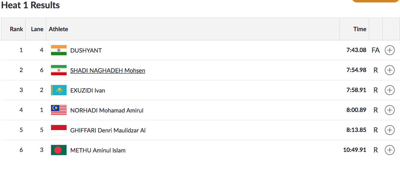 Dushyant qualifies for the finals of the Men's Lightweight Single Sculls after finishing first in the Heats with a timing of 7.43.08.