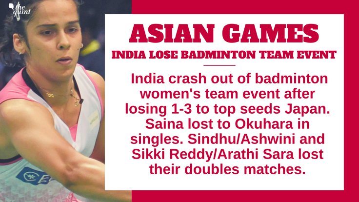 A match fought hard, but lost in vain!#TeamIndia's #SainaNehwal lost her Singles match of the Women's Team quarter-final event against #NozomiOkuhara of Japan after putting up a great fight! Japan now lead 2-1 in the team event!