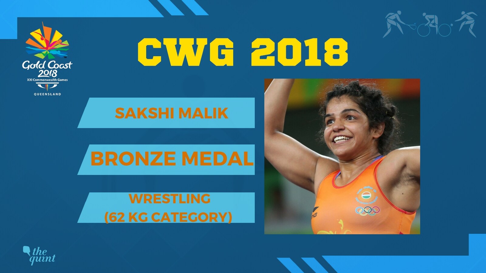 - Wrestler Sakshi Malik (62 kg) wins bronze medal. This is India's 50th medal at CWG 2018.