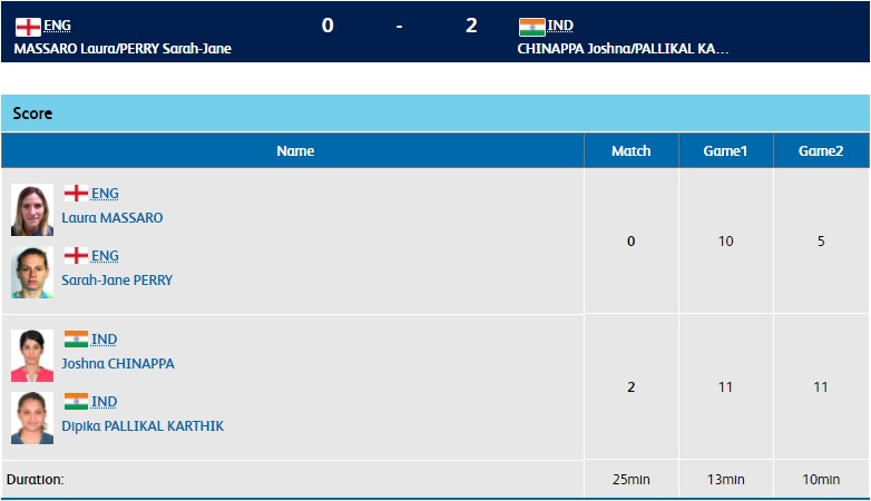 Squash: Joshna Chinappa/Dipika Pallikal Move Into Final