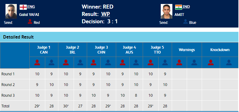 22-year-old Amit Panghal takes home silver in the 49 kg boxing final after he lost to England's Galal Yafai in a 3-1 split verdict.