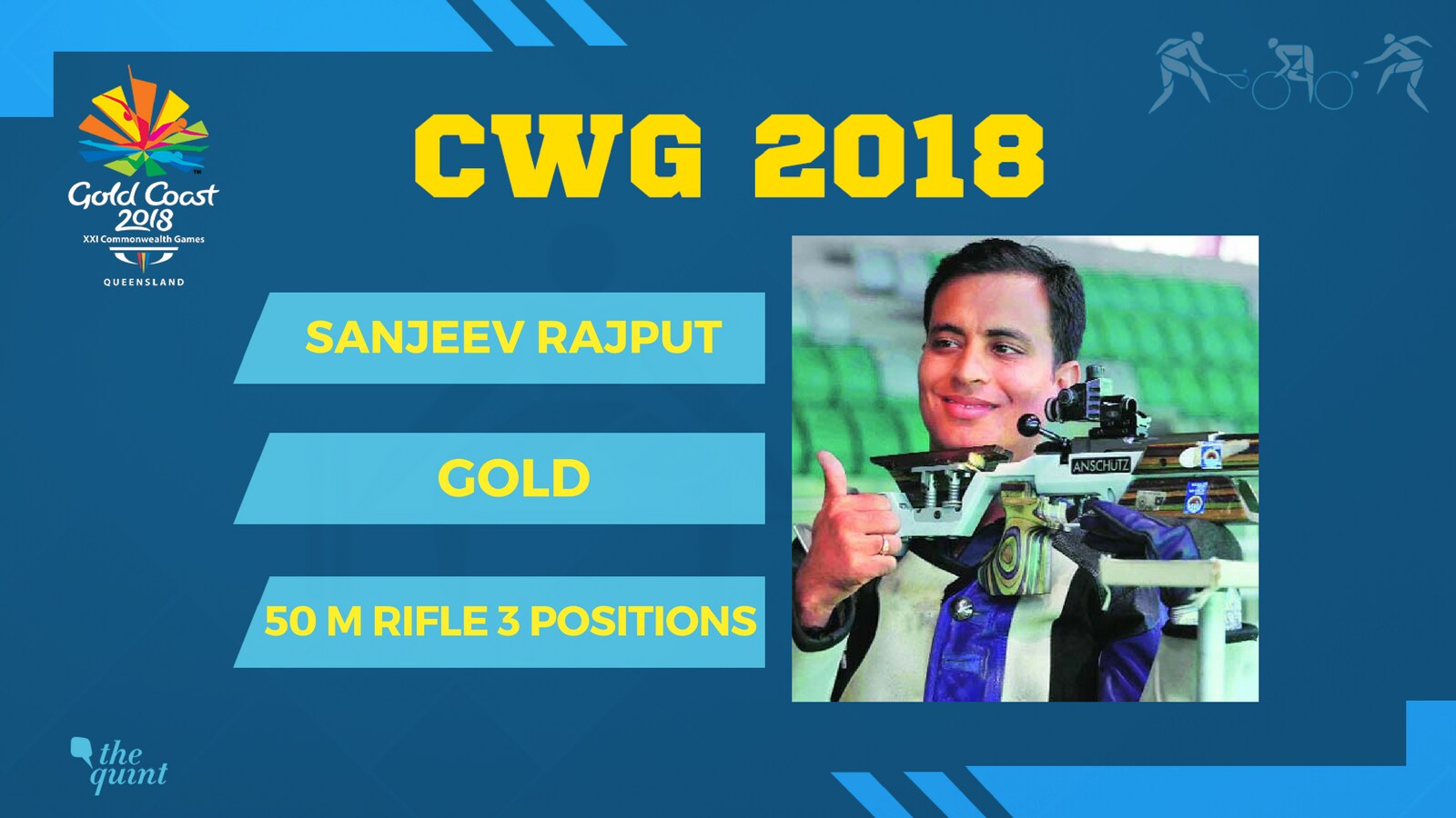 Sanjeev Rajput shoots a Commonwealth Games record of 454.5 to take home India's 19th gold medal at Gold Coast. Chain Singh comes fifth with a score of 419.1.