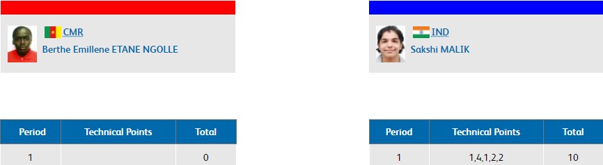 In the women's 62 kg weight class event, Rio Olympics bronze medallist Sakshi Malik wins her opening round against Cameroon's Berthe Emillene Etane Ngolle within three minutes. She took a 10-0 lead to seal victory due to technical superiority.