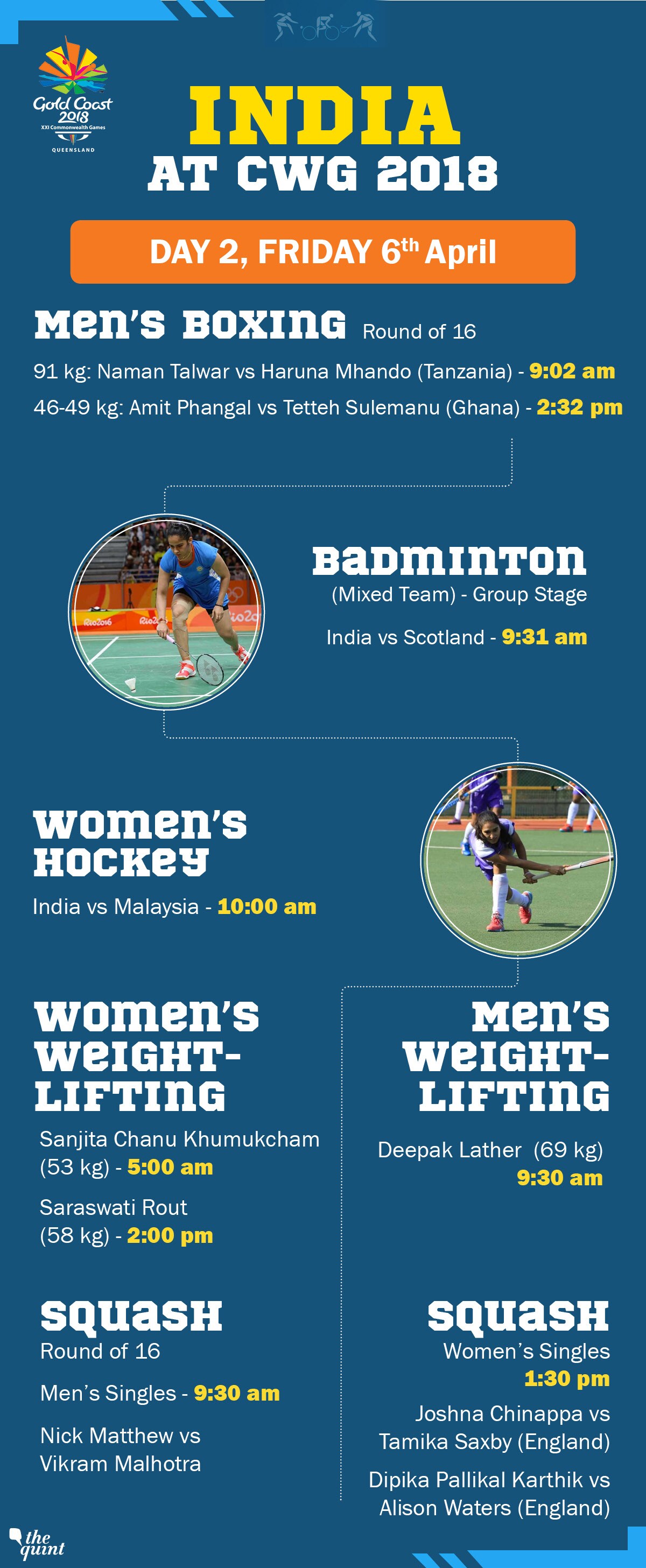• Earlier on Day 1, weightlifter Gururaja won India's first medal of the 2018 Commonwealth Games.