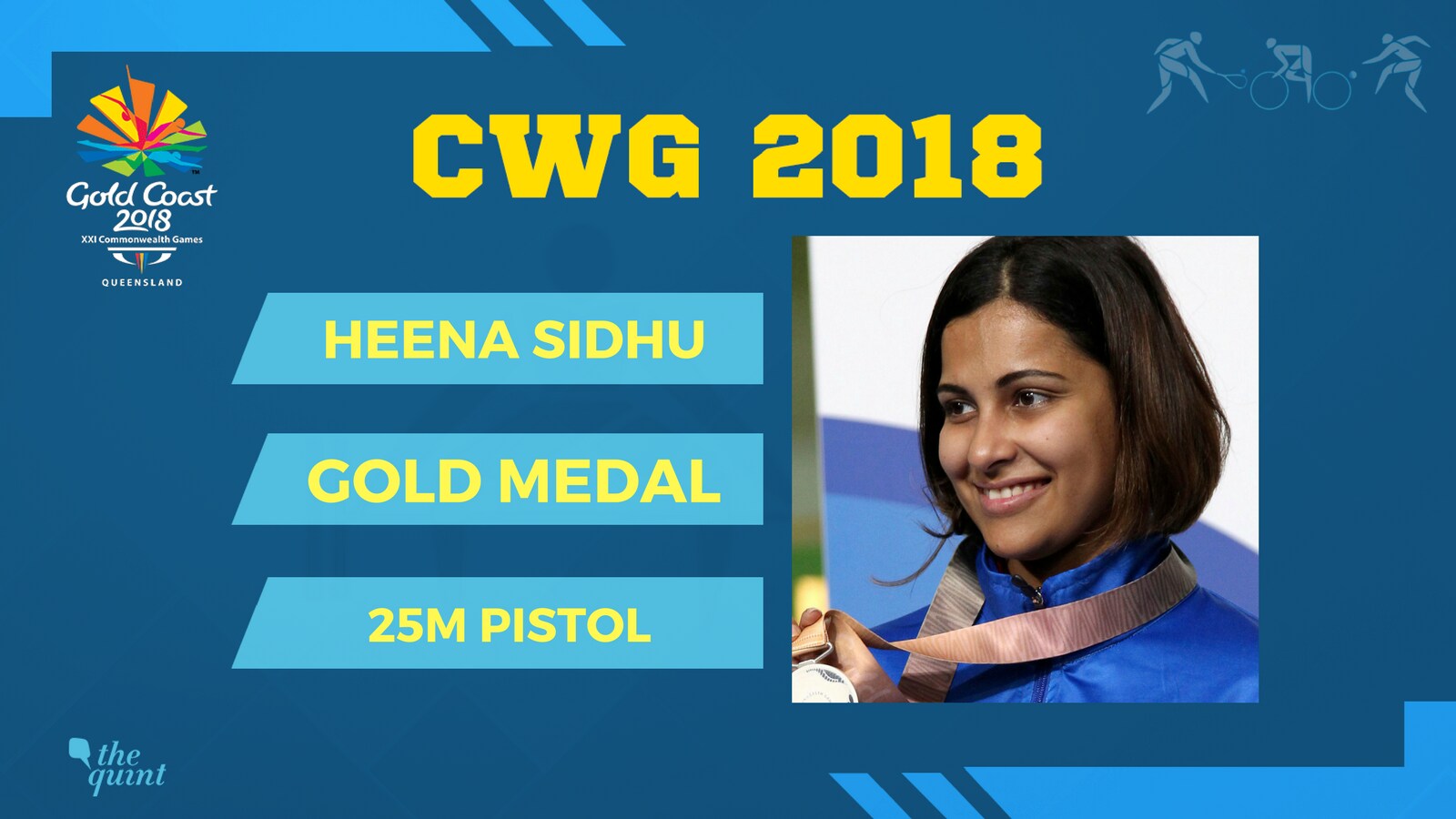 Heena Sidhu has won her second medal of the ongoing Commonwealth Games with a gold-medal in the women's 25m pistol final. Her score of 38 in the final is also a new Commonwealth Games record.