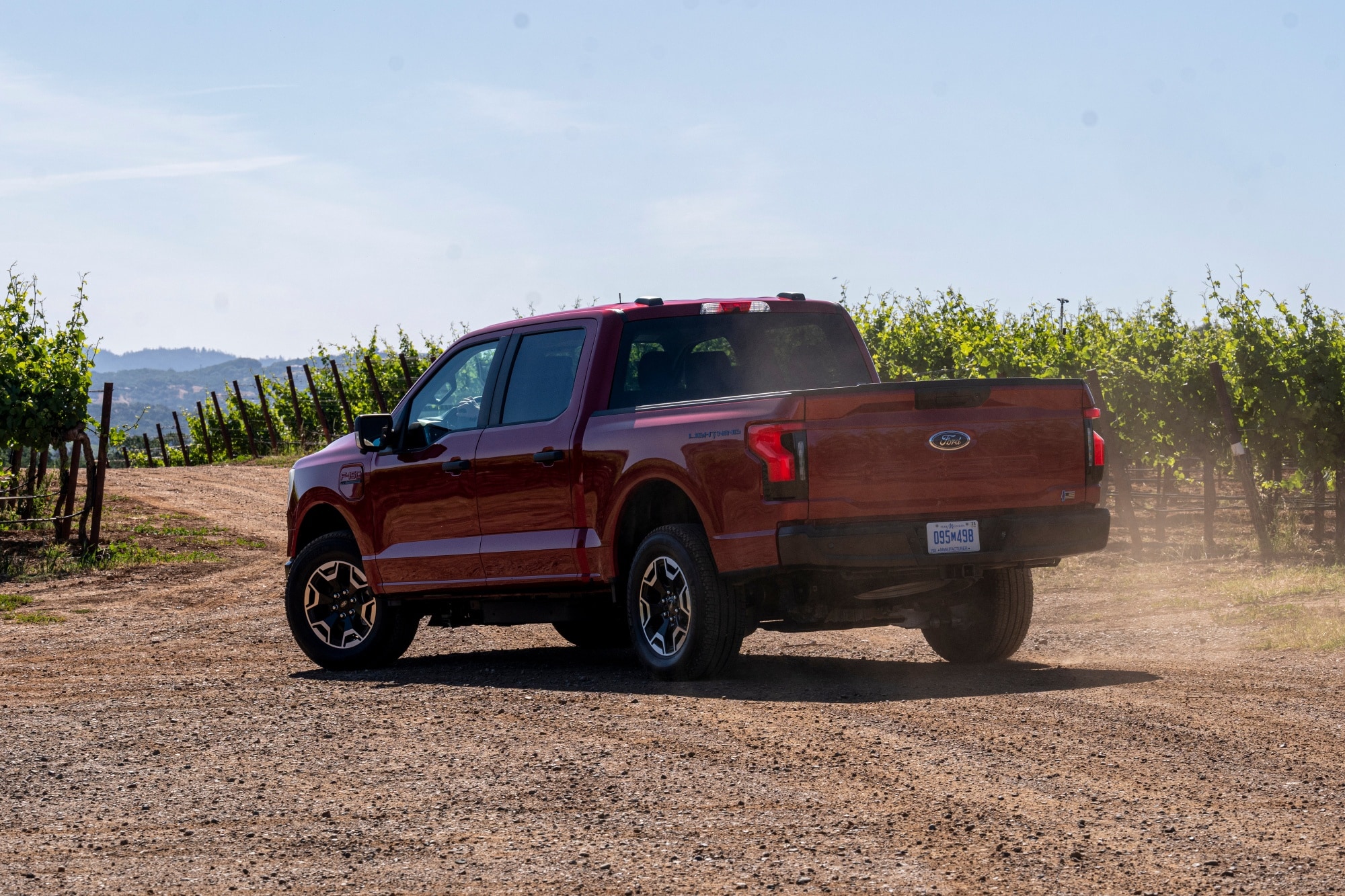 He's speaking from the tailgate of a Lightning, one of three parked on a hill overlooking vineyards at Dutton Ranch in Sebastopol, along with a top Ford executive and the president of Sonoma County Winegrowers, an association of 1,800 farmers that promotes sustainable agriculture. Ford staged the event earlier this month to showcase a pilot program that's supplying Dutton Ranch and two other local farms with electric pickups and vans as part of a service called Ford Pro that helps businesses manage their vehicle fleets.