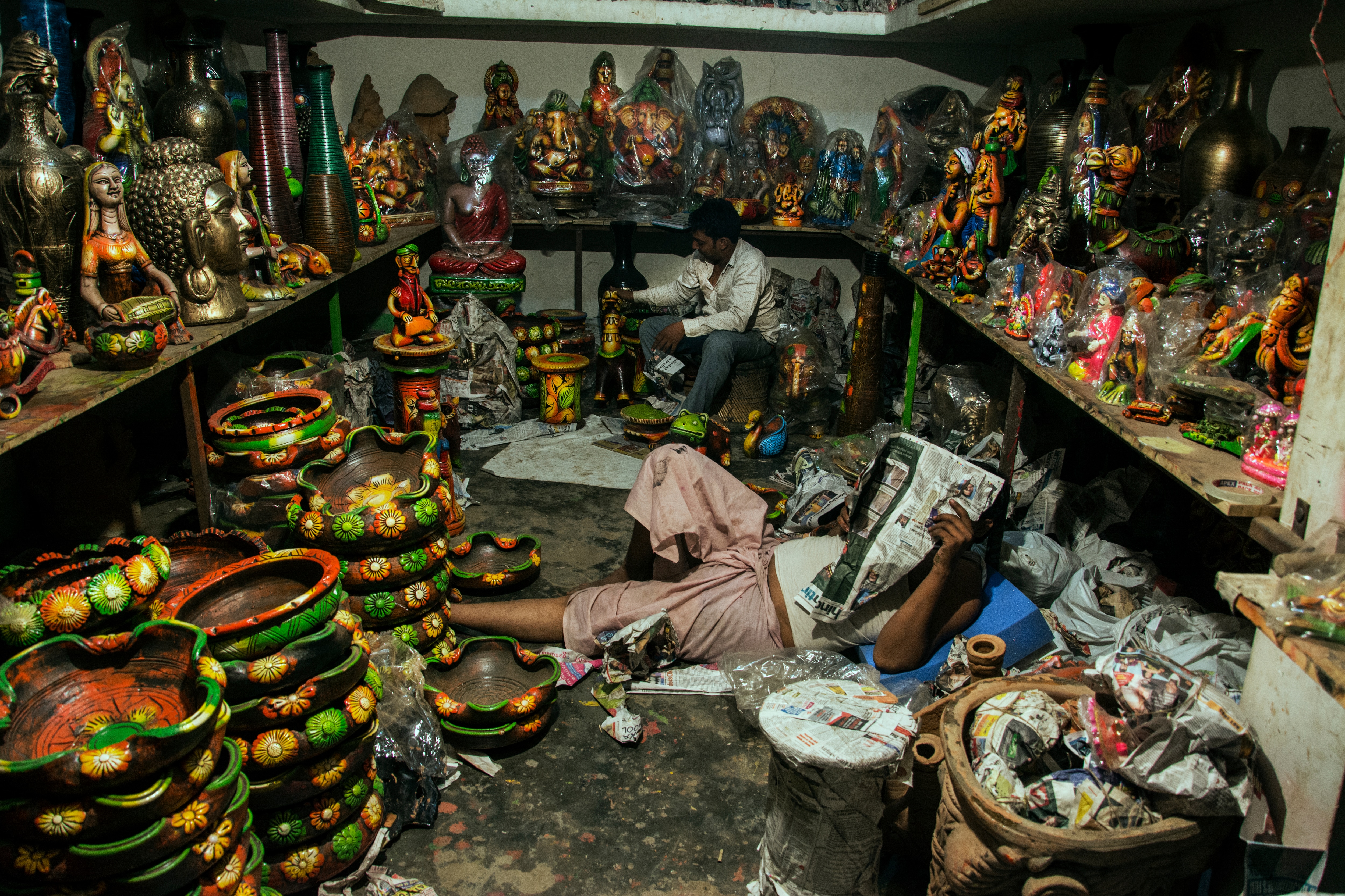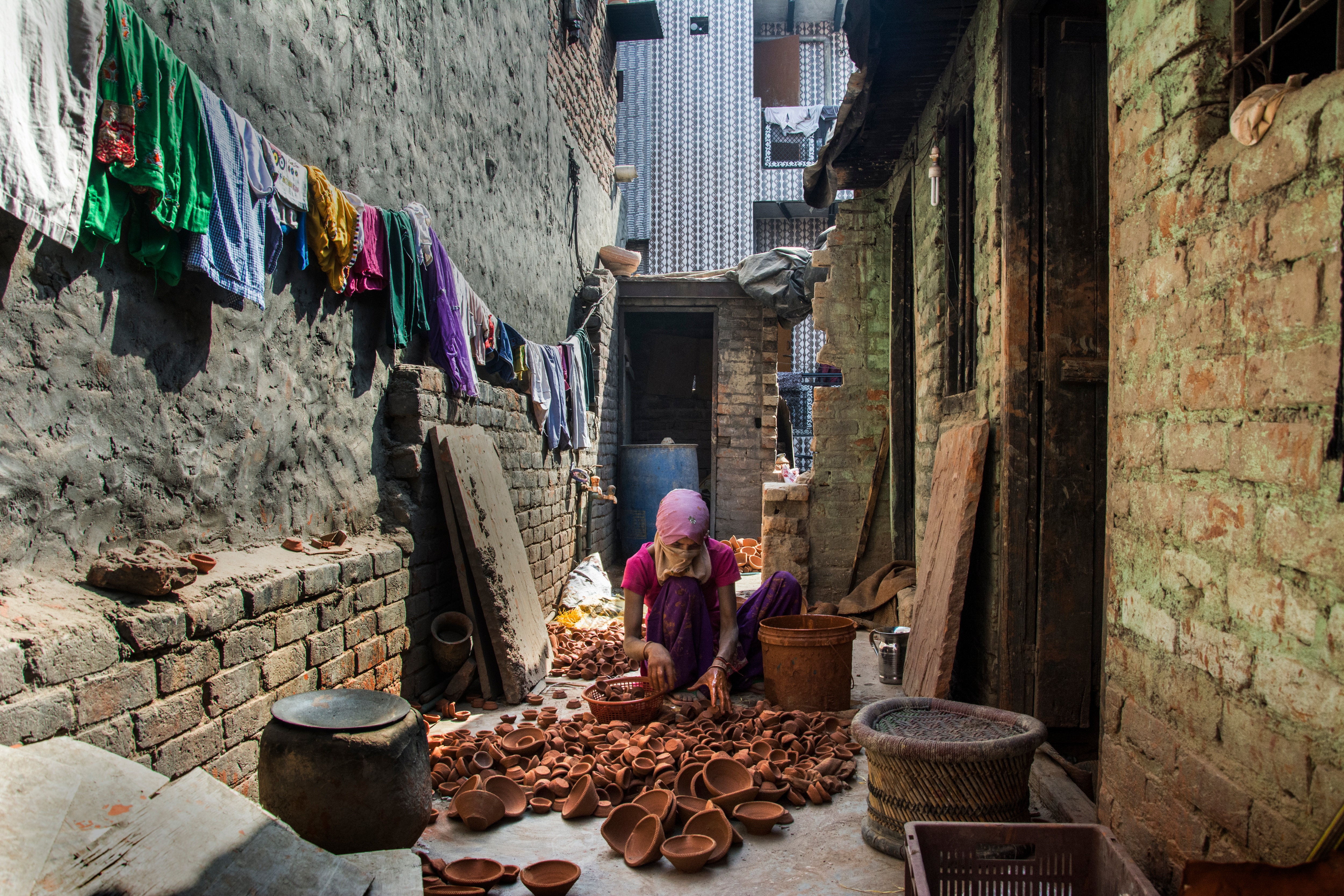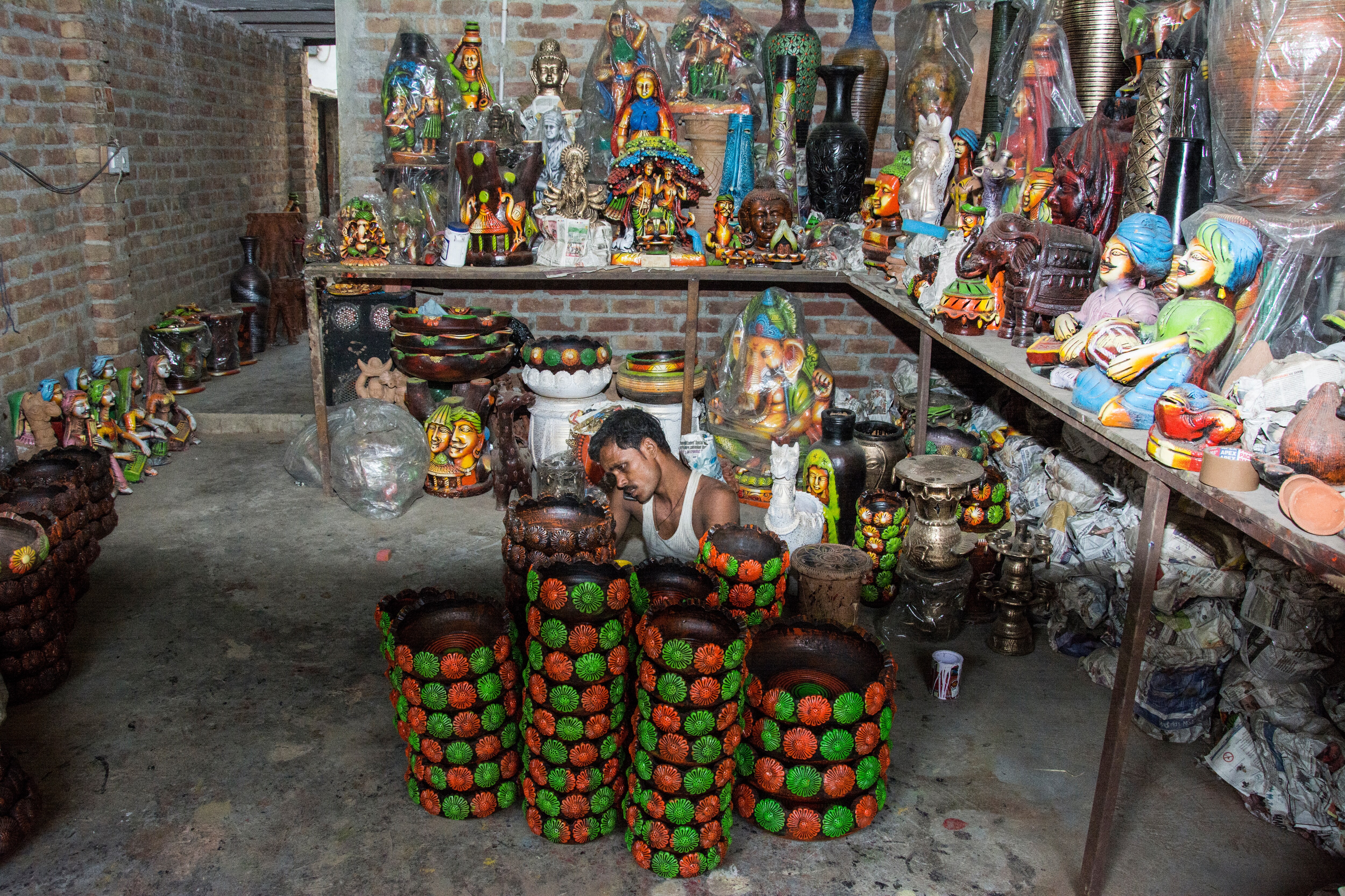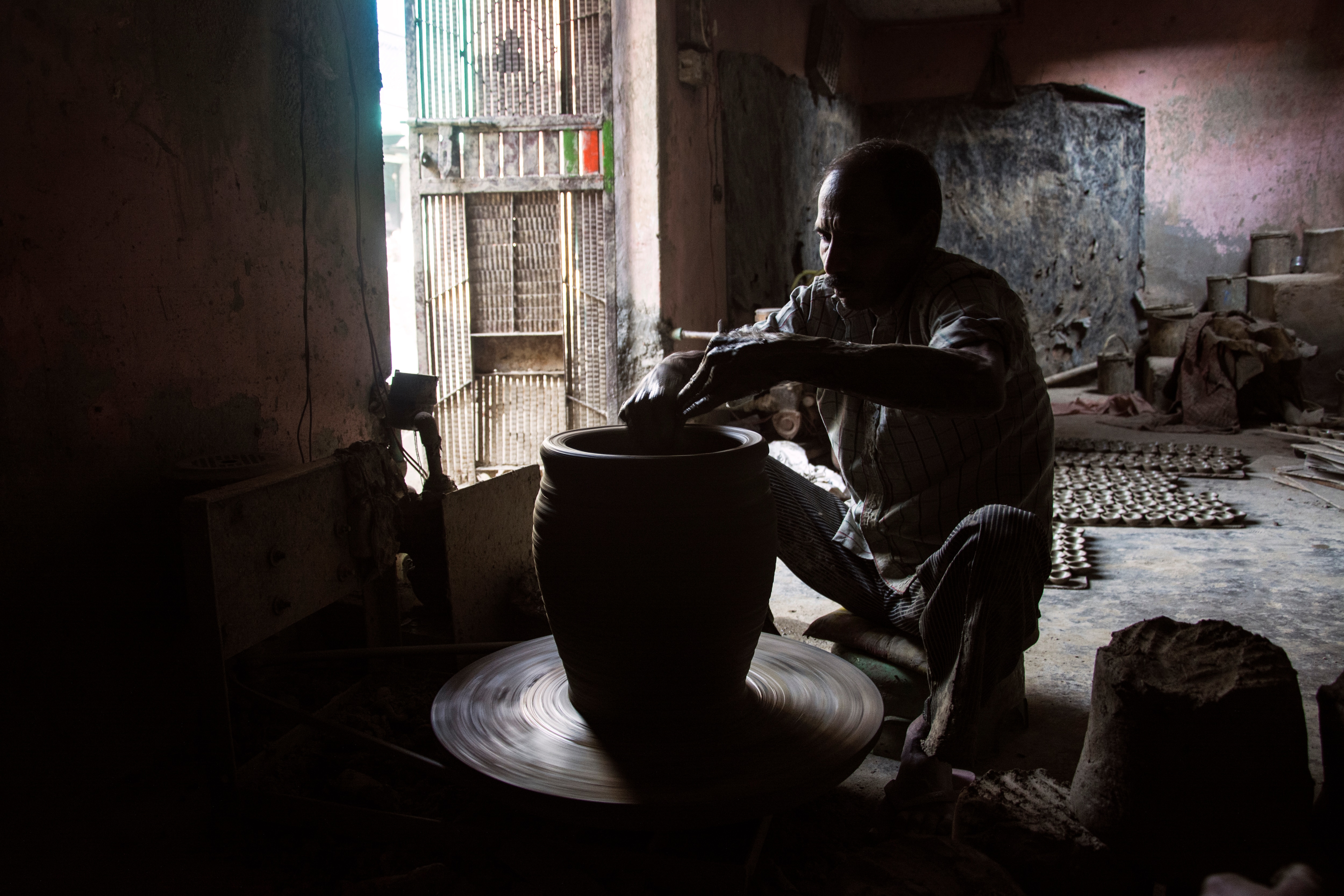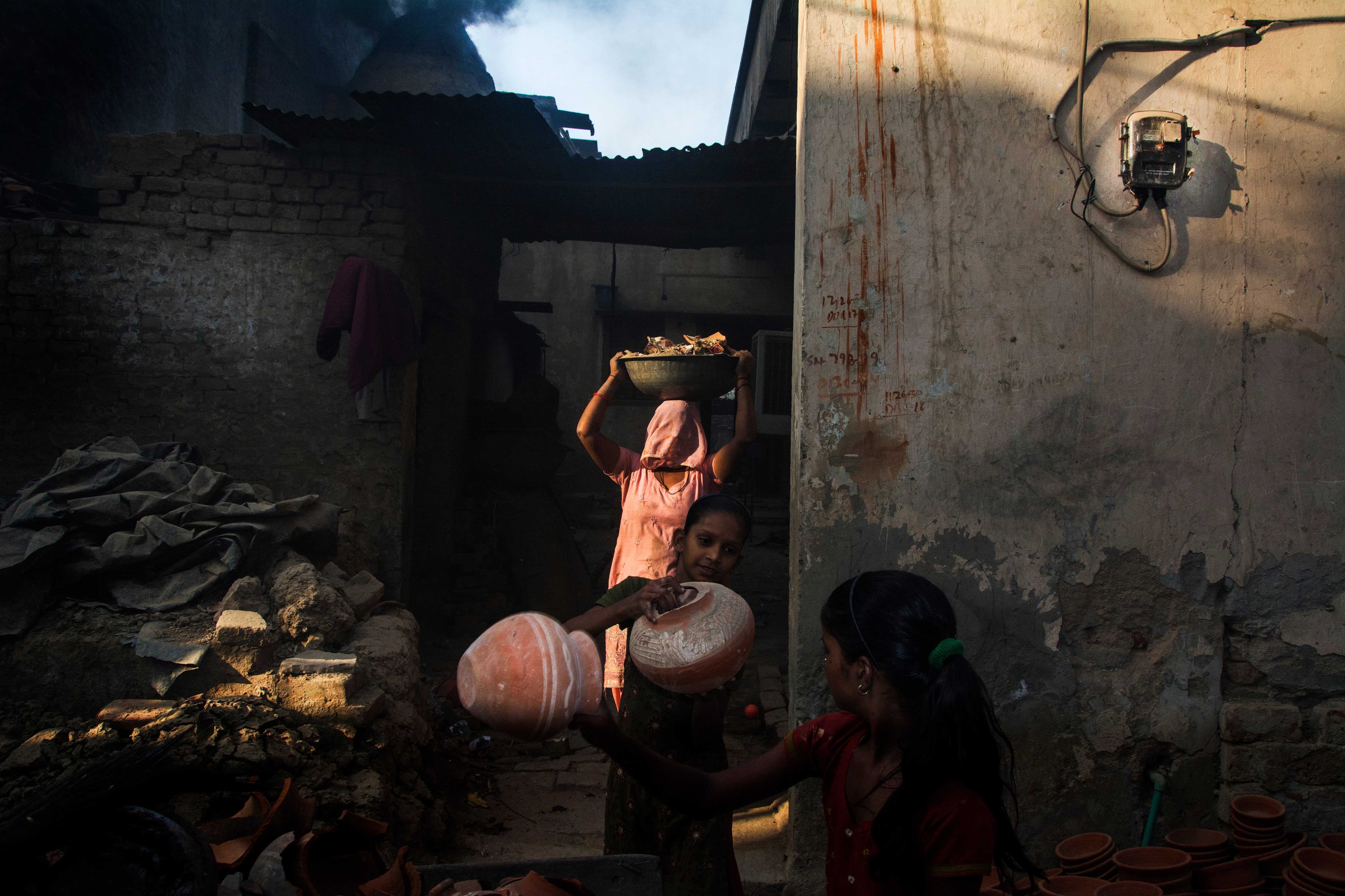 The potters work in cramped spaces, with no proper air circulation. Most of the times, their houses double up as the workshop. This is the reason why most of the kids don't want to live in this place.