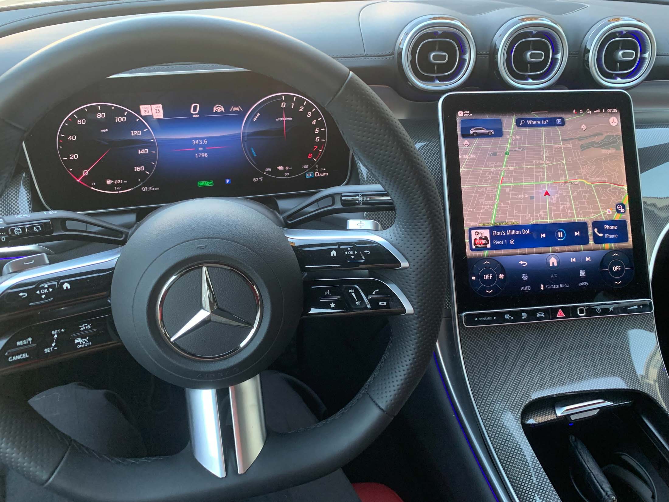 CarPlay and Android merit dedicated screens, but studies show that most consumers, especially in the premium segments, prefer an analog interface, says Tony Salerno, the managing director for automotive advisory and analytics at J.D. Power. Almost no one likes traditionally analog controls like side-mirror adjusters, vent directions and seat adjusters to be baked into the computer. “Consumers were having problems with the interfaces; menus are too deep,” says Salerno. “It's like, ‘I just wanna turn the volume up. I want to touch a button. I don't want to have to flip between the radio and the air conditioning, I want to be able to see them both at the same time."