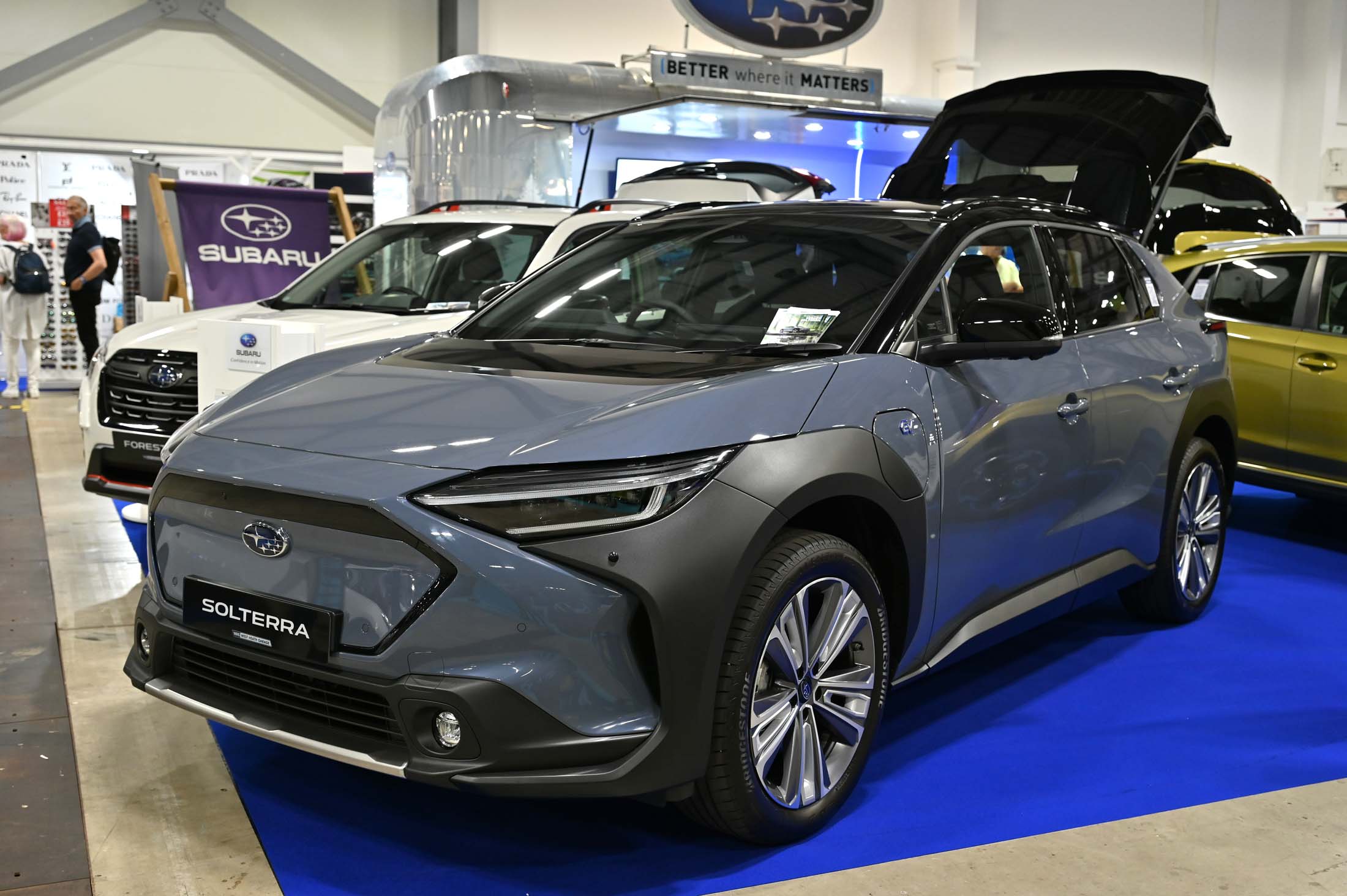 The black plastic cladding on this Subaru Solterra makes us think of a kid's toy.