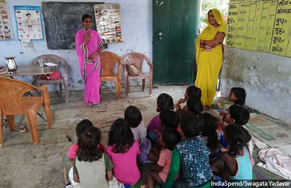 Under ICDS, the person who shoulders the responsibility of on-the-ground implementation is the AWW. Usually, she is a local village woman, between 18 to 35 years of age and educated up to grade X. She gets paid around Rs 4,000 per month–below India's per capita monthly income of Rs 7,204 albeit greater than UP's Rs 2,974.