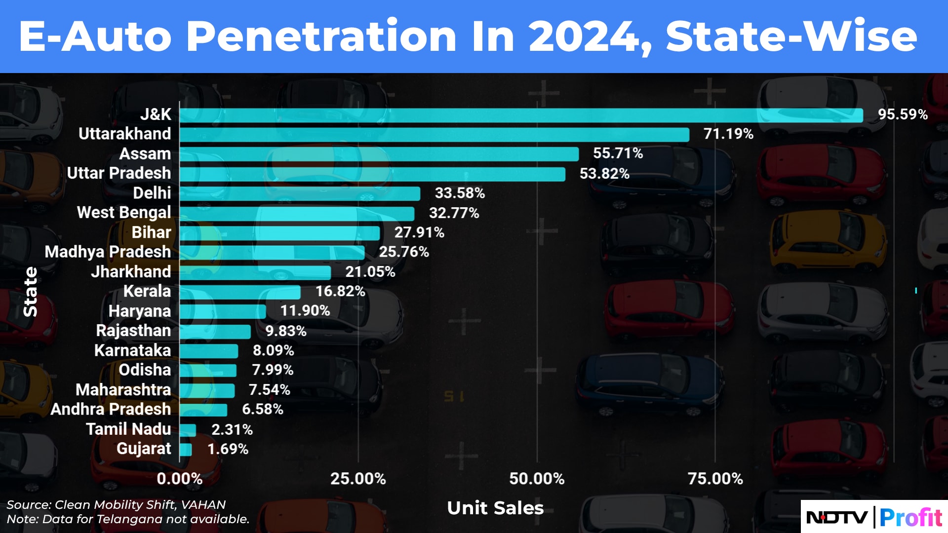 In 2024, as many as 40,142 electric autorickshaws were sold in Uttar Pradesh. That figure stood at 1,070 for Gujarat—the EV penetration stood at 53.82% and 1.69%, according to VAHAN data collated and sourced from Clean Mobility Shift. That, when total passenger three-wheeler sales were comparable at 74,581 units in UP and 63,244 units in Gujarat.