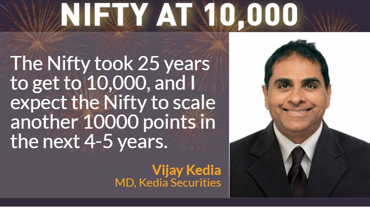 Vijay Kedia, managing director at Kedia Securities said the index is poised to run up another 10,000 points in the next four to five years.