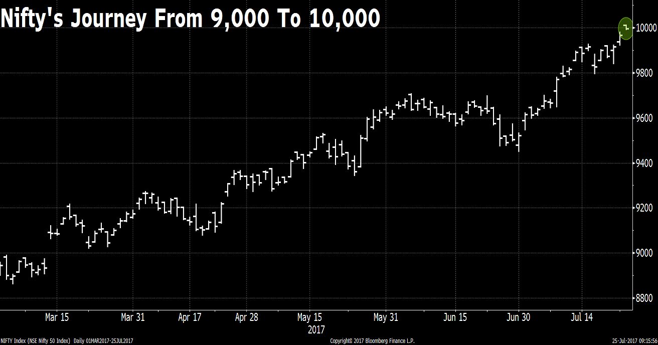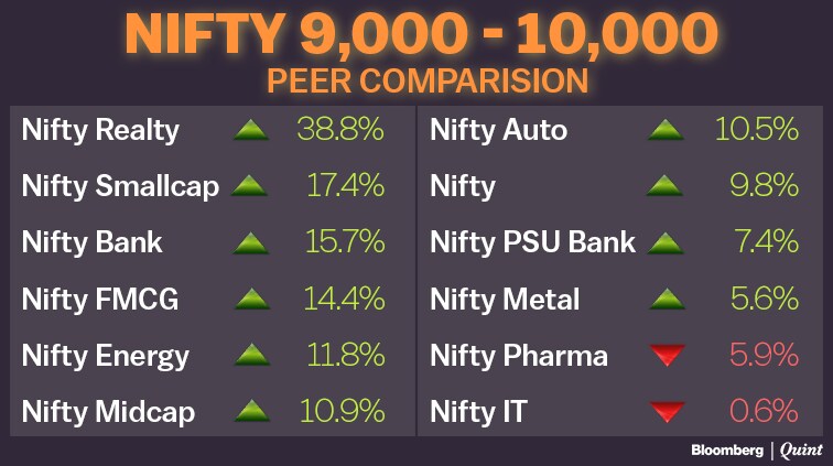 - Nifty moved from 9,000-10,000 in 92 trading sessions