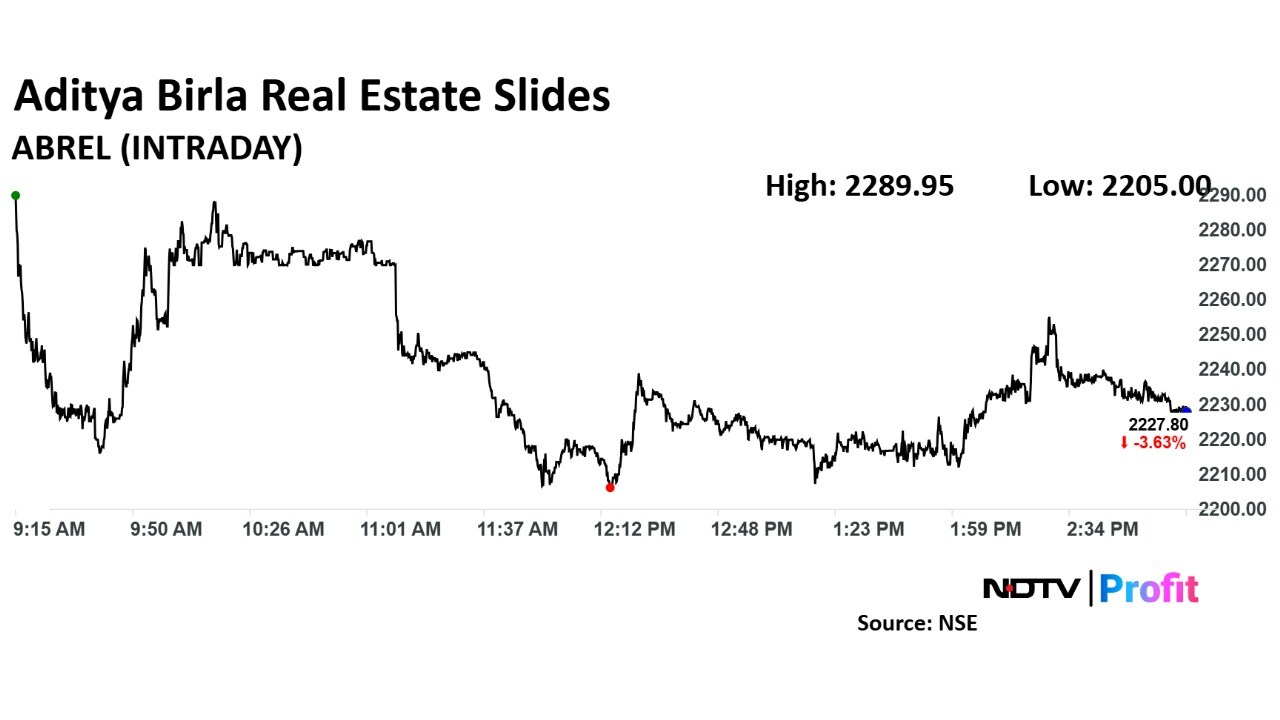 Shares of Aditya Birla Real Estate Ltd. (formerly Century Textiles and Industries Ltd.) saw a nearly 5% decline after the Supreme Court overturned a 2022 ruling by the Bombay High Court, which had favoured the company in a land dispute with the Municipal Corporation of Greater Mumbai.