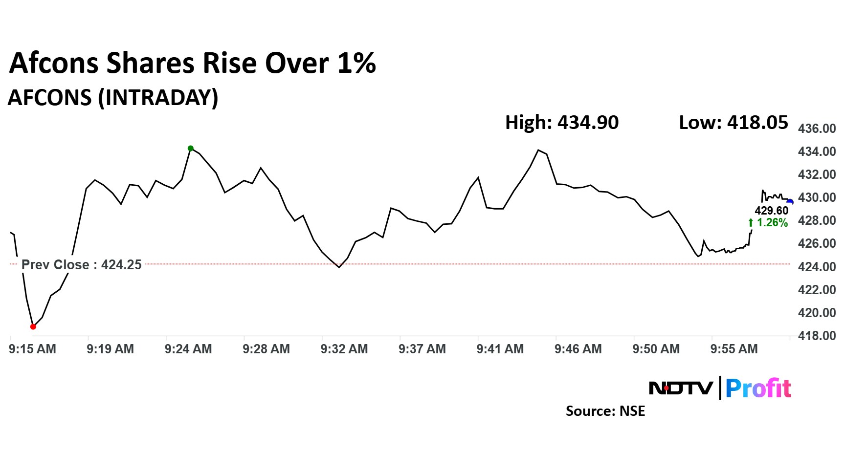 Afcons stock rose as much as 2.51% during the day to Rs 435 apiece on the NSE. It was trading 0.68% higher at Rs 427.15 apiece, compared to an 0.75% decline in the benchmark Nifty 50 as of 10:00 a.m.
