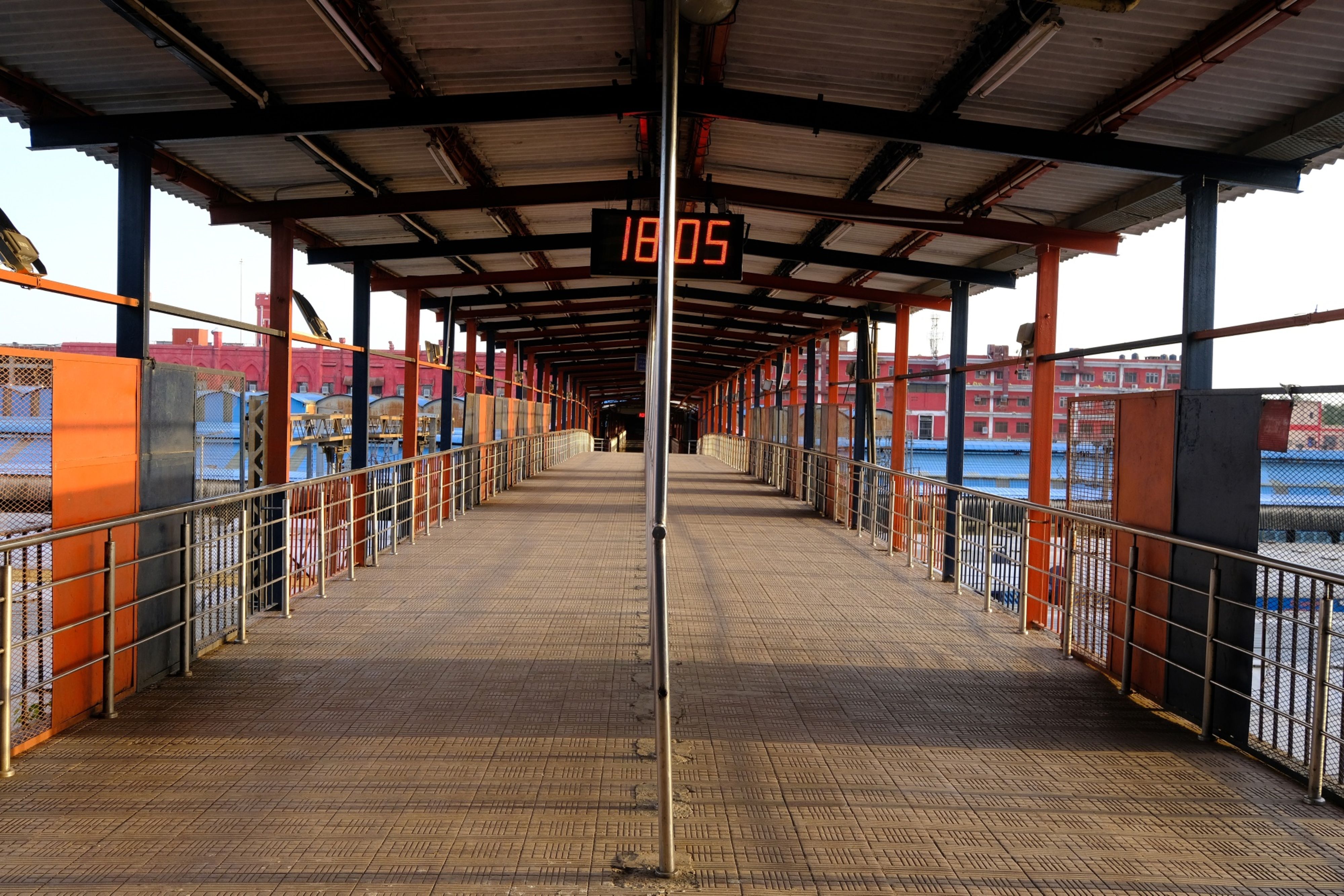 A digital clock is displayed on an overpass inside the empty Delhi Junction railway station during a lockdown imposed due to the coronavirus in Delhi, India. (Photographer: T. Narayan/Bloomberg)