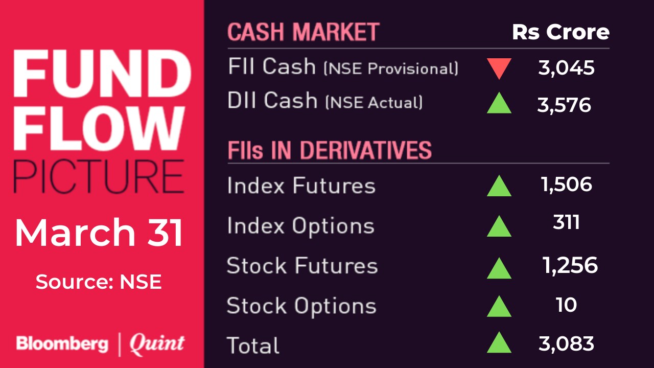 • Nifty Bank April futures closed at 19,135.5, a discount of 8.5 points versus a premium of 17 points.