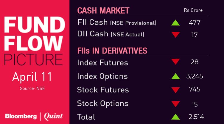 - 5:30 p.m.: India March Consumer Price Inflation YoY; Bloomberg estimates at 2.8 percent (prior 2.57 percent).