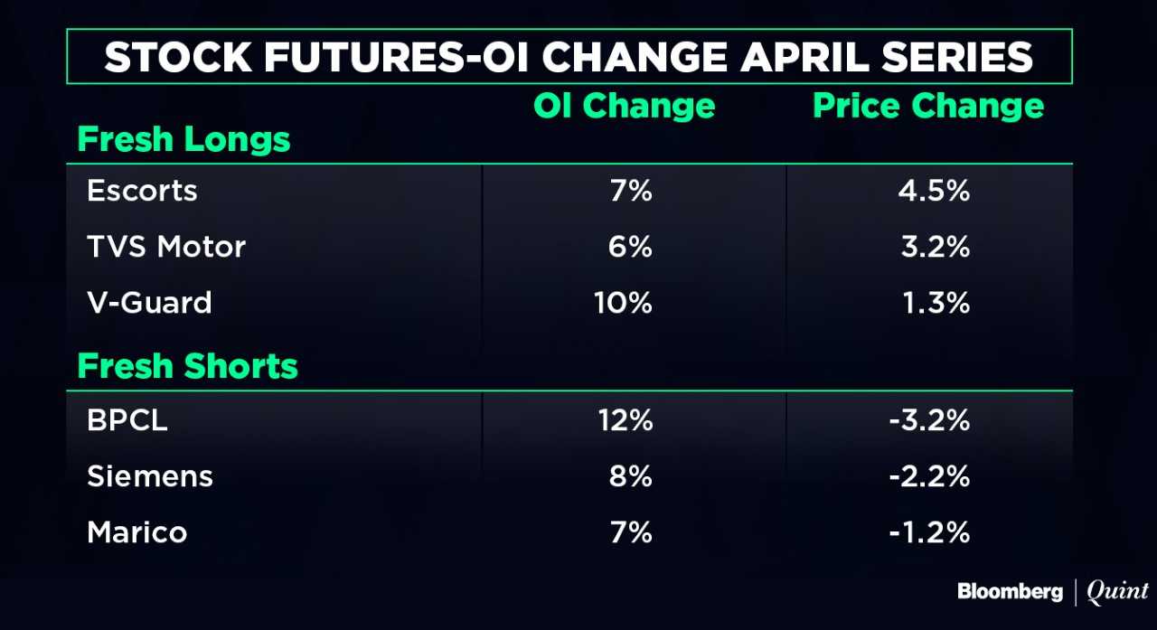 • April series-Nifty open interest up 3 percent, Bank Nifty open interest down 5 percent.