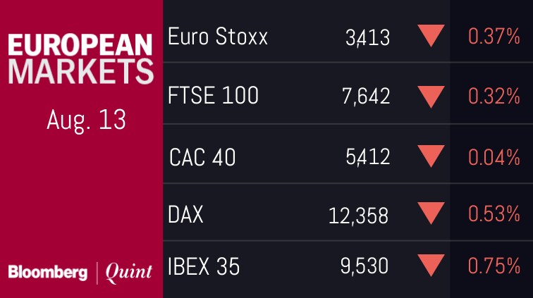 - 12pm: India July wholesale prices inflation YoY, estimate 5.22 percent, prior 5.77 percent.