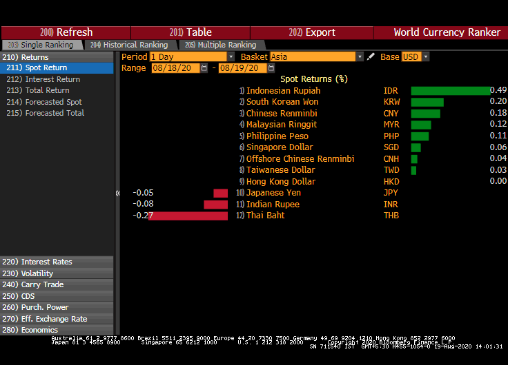 - West Texas Intermediate crude fell 0.8% to $42.6 per barrel while Gold rose 0.4% after an overnight drop to $1,937.8/Oz.