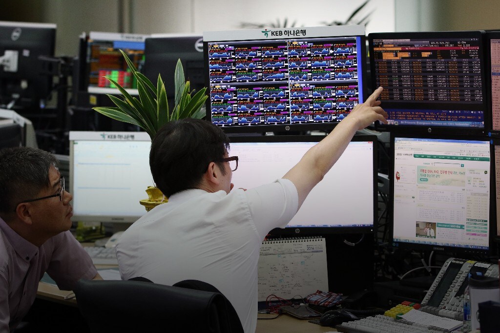 Foreign currency dealers at a bank in Seoul, South Korea (Photographer: SeongJoon Cho/Bloomberg)