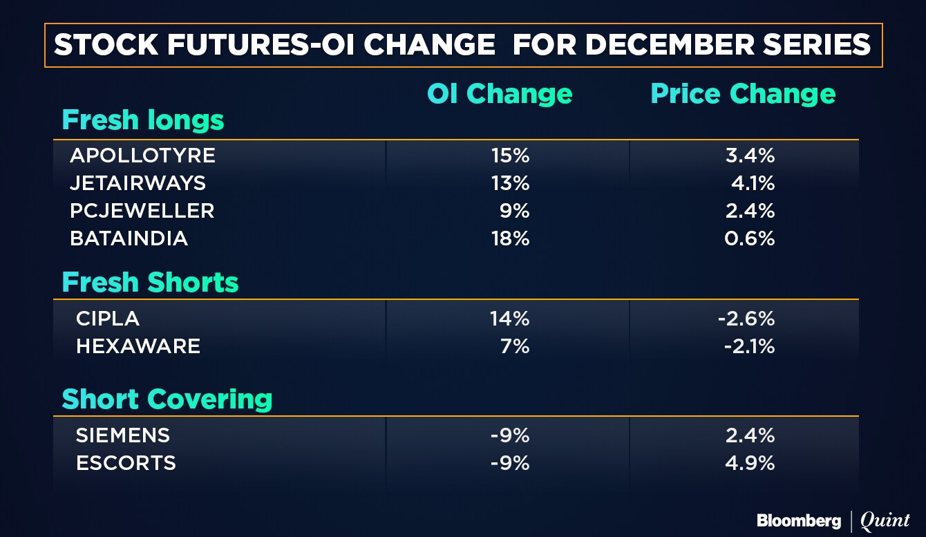 • December Futures-Nifty open interest down 6 percent and Bank Nifty open interest down 17 percent.
