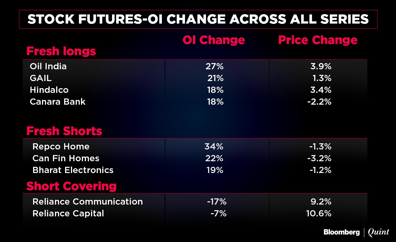 - Across all series: Nifty open interest up 14 percent; Bank Nifty open interest down 6 percent