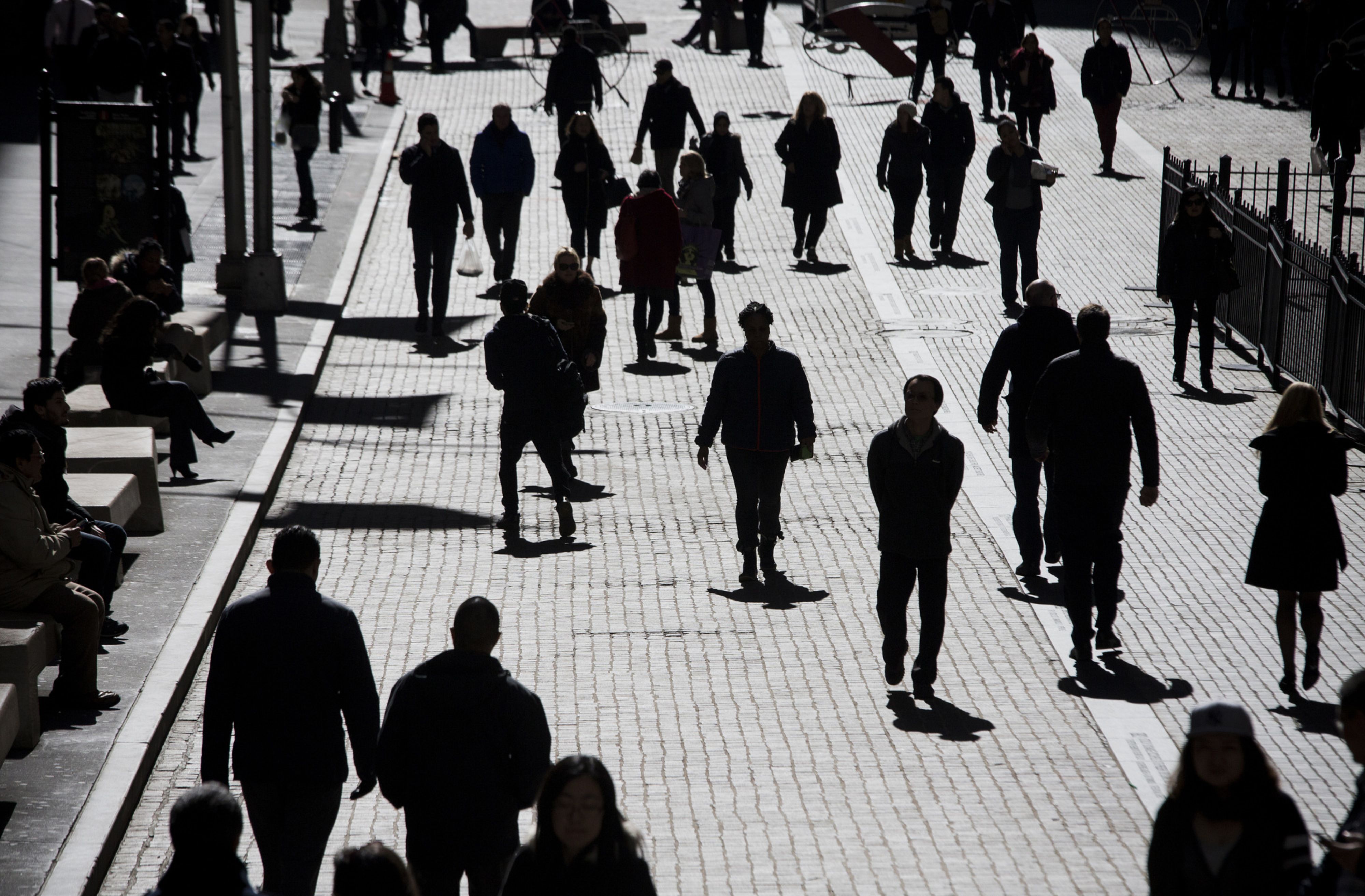 Pedestrians walk past NYSE in New York, U.S. (Photographer: John Taggart/Bloomberg)